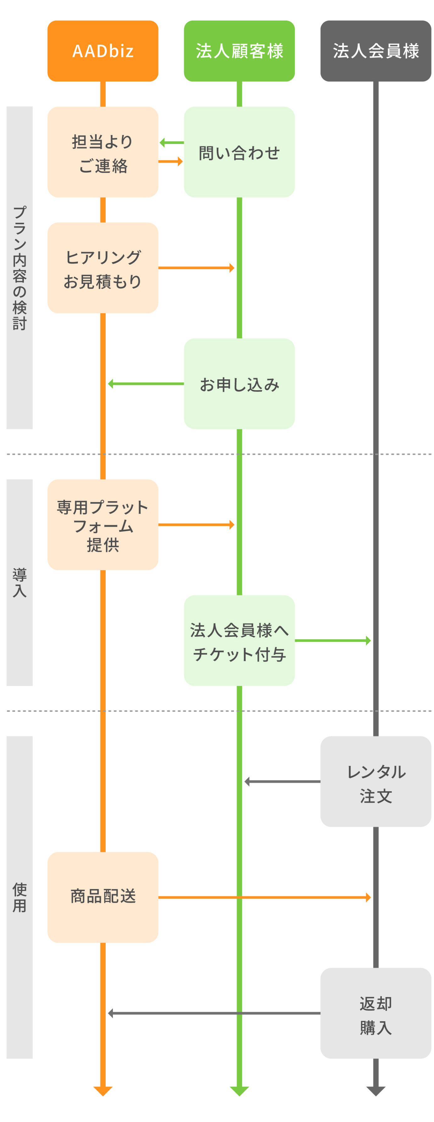 登壇・接客・福利厚生から非日常体験まで。用途やタイミングに応じたブランド服を、豊富なラインナップから自由に選べます。