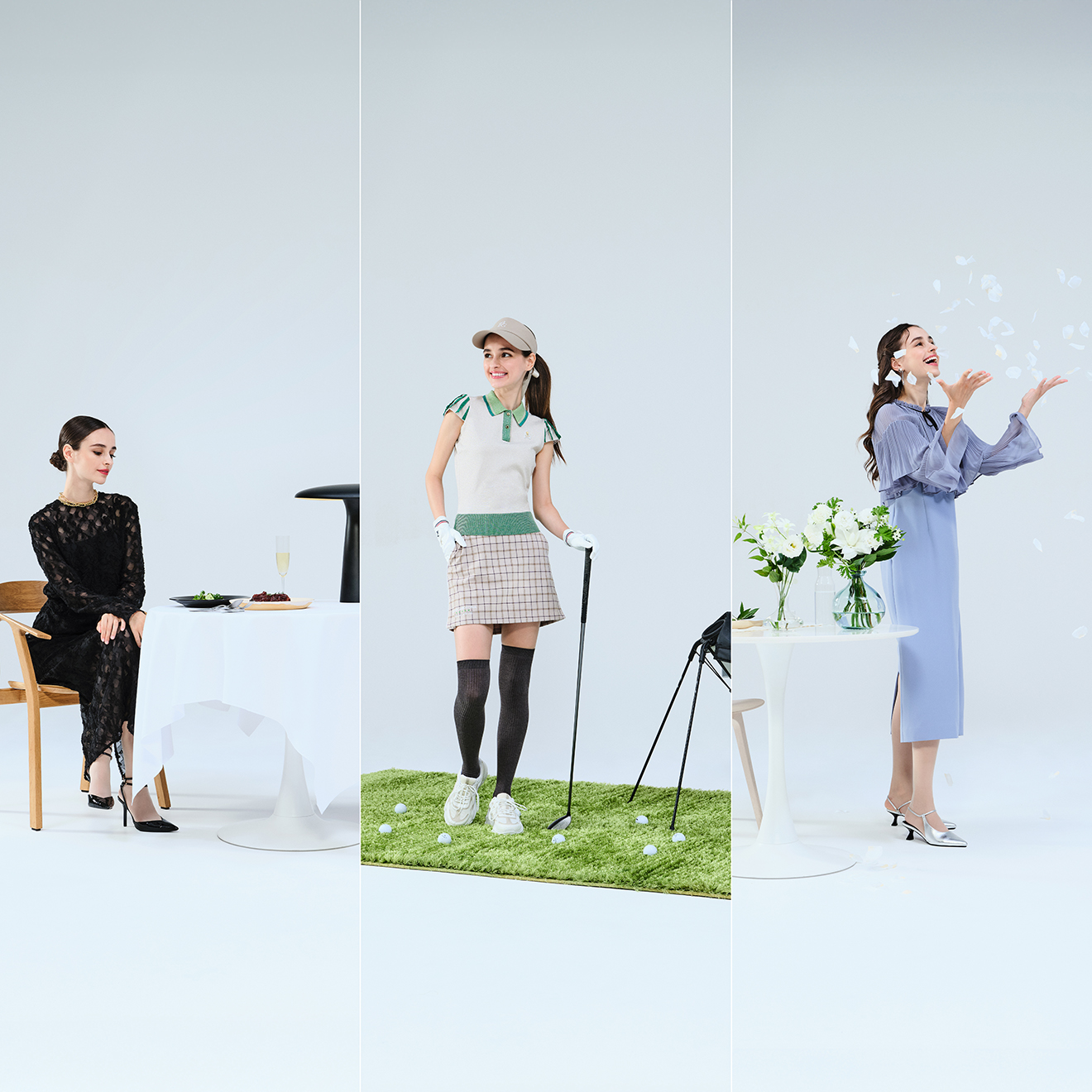 撮影・イベント・展示など多様な用途に対応。ドレスからビジネス、ゴルフウェア、アートまでバラエティ豊かに揃えています。