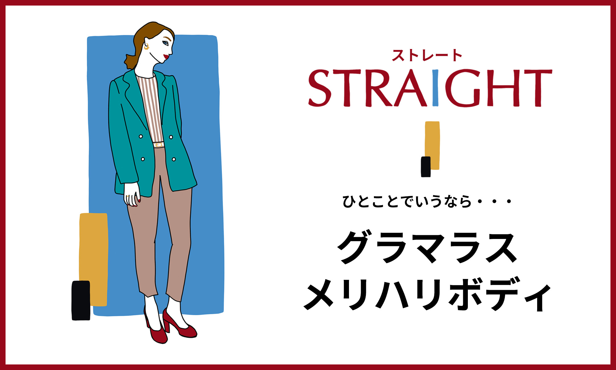 骨格ストレートは筋肉が付きやすく立体的なボディ。上重心で肌にハリを感じる。立体的で厚みがあるメリハリボディ、肌に弾力あり、ヒップに丸みがあり、腰の位置は高く脚長さん。
