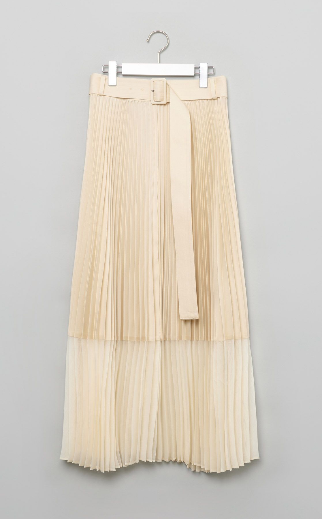 同色で切り替えがあり軽やかでした。ただすごく長さがあるので身長170でもウェストを折り返さないと裾を引き摺りそうでした。