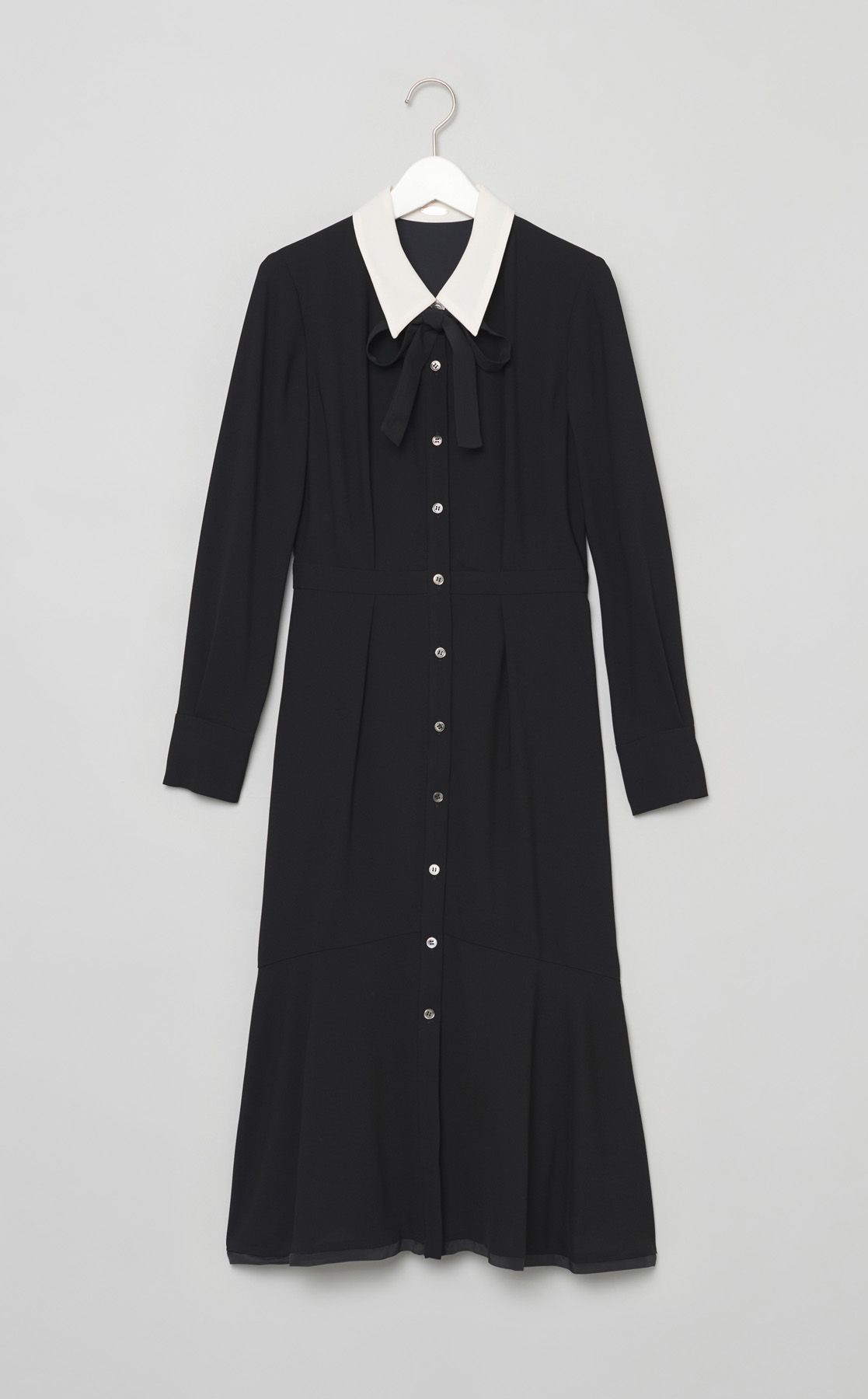 ・ワンピース 表生地:トリアセテート62% ポリエステル38% 袖部分:ポリエステル100% 裏生地:ポリエステル100% ボウタイ:ポリエステル100%