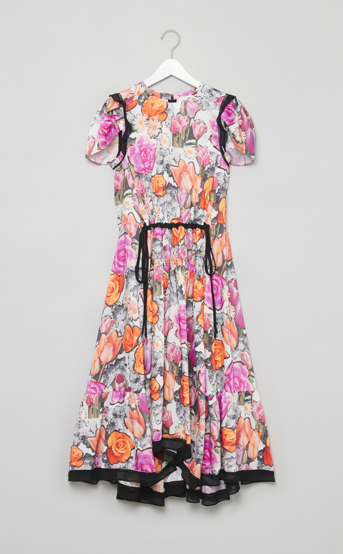 フラワープリントギャザーワンピース