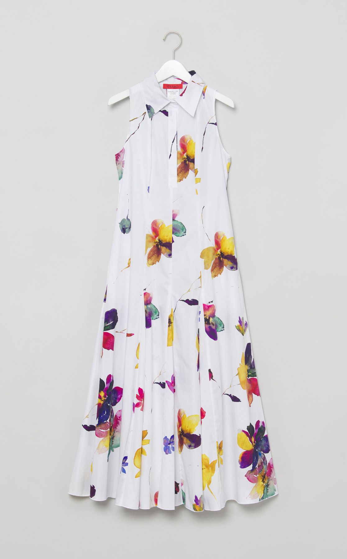 アメスリ寄りのラインで腰のしぼりがなだらか、腕の太さはかなり目立つので要注意です。夏にさわやかな白は素敵でギリ下着も透けないかなという感じ。実物は花柄がやや色味が地味に感じました。華やかな方が好みだったので断念しましたがシックな装いが好きな方にはいいと思います。丈感はかなり長く感じました。