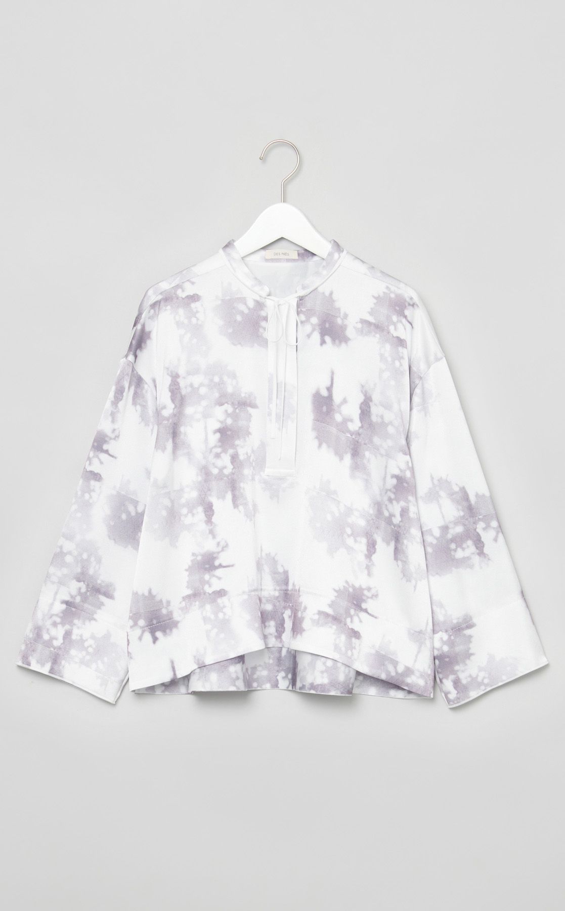 プリントノーカラーブラウス