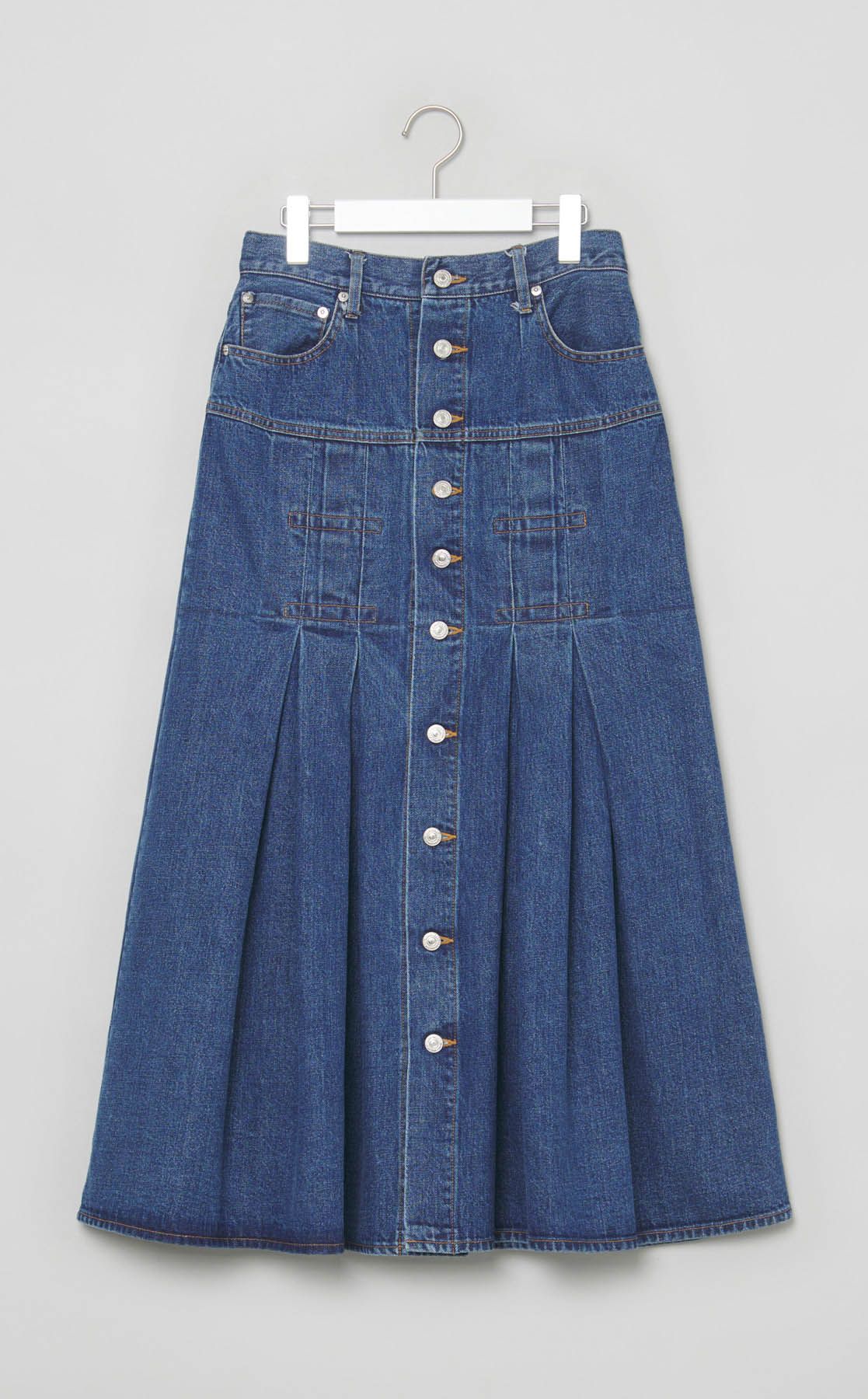 デニムフロントボタンタックスカート