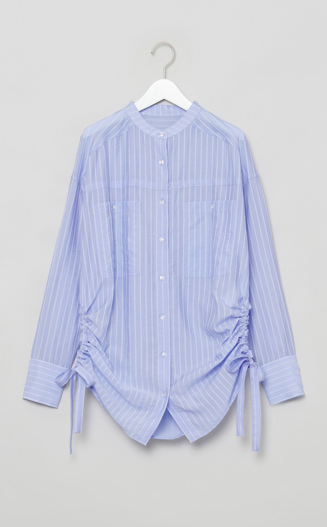 素材がかなり薄手なので、少し透け感があります。爽やかな色味で涼しげな印象のため、夏はタンクトップの上に羽織ったりと、一枚でもレイヤードでも楽しめました。