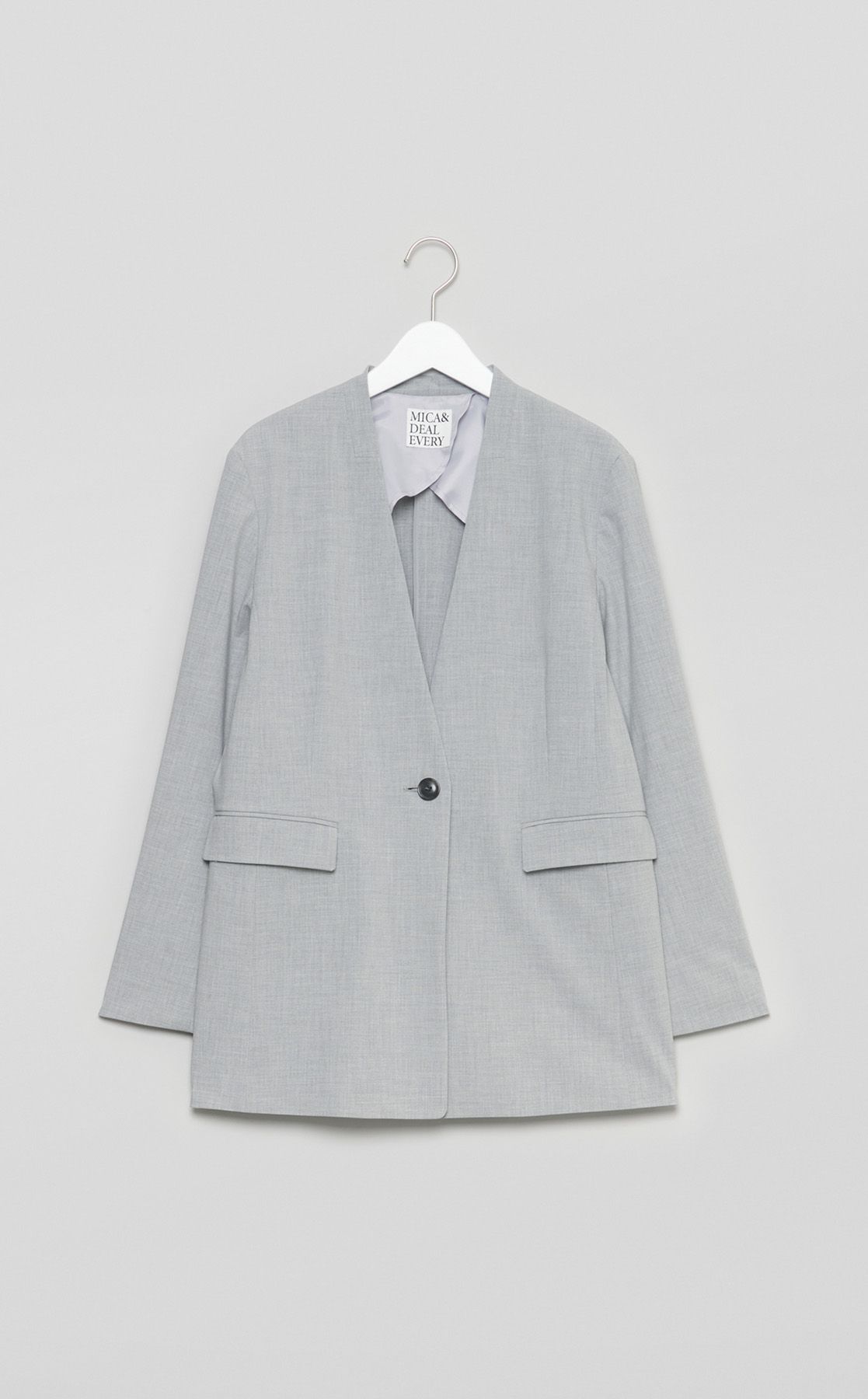 少しオーバーサイズで体型を隠せるかたち。背中にスリットがないのでフォーマルすぎないデザイン。裏地も夏仕様、生地もさらりとしていて着ごこちよかった。