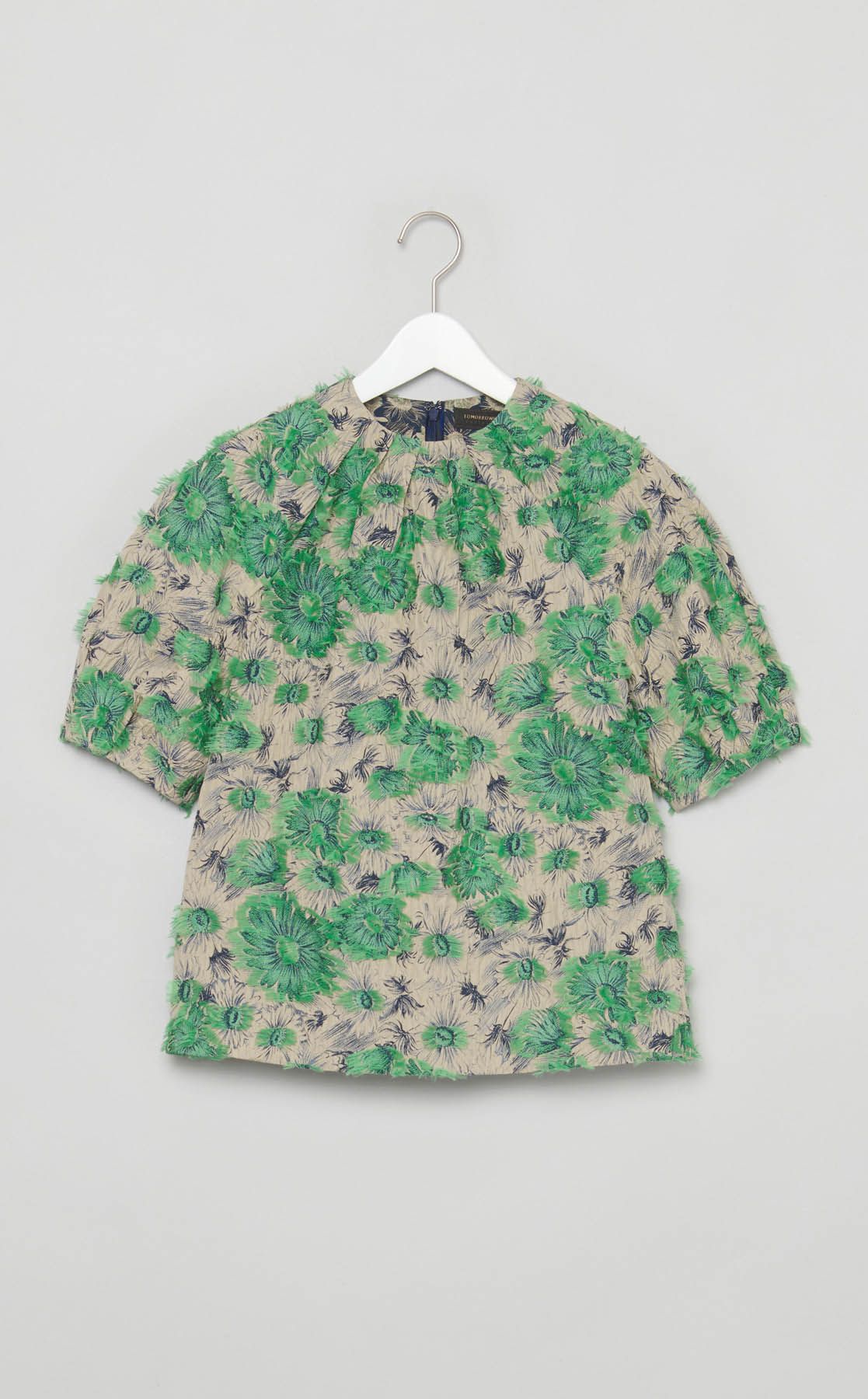 フラワーネックラインタックブラウス