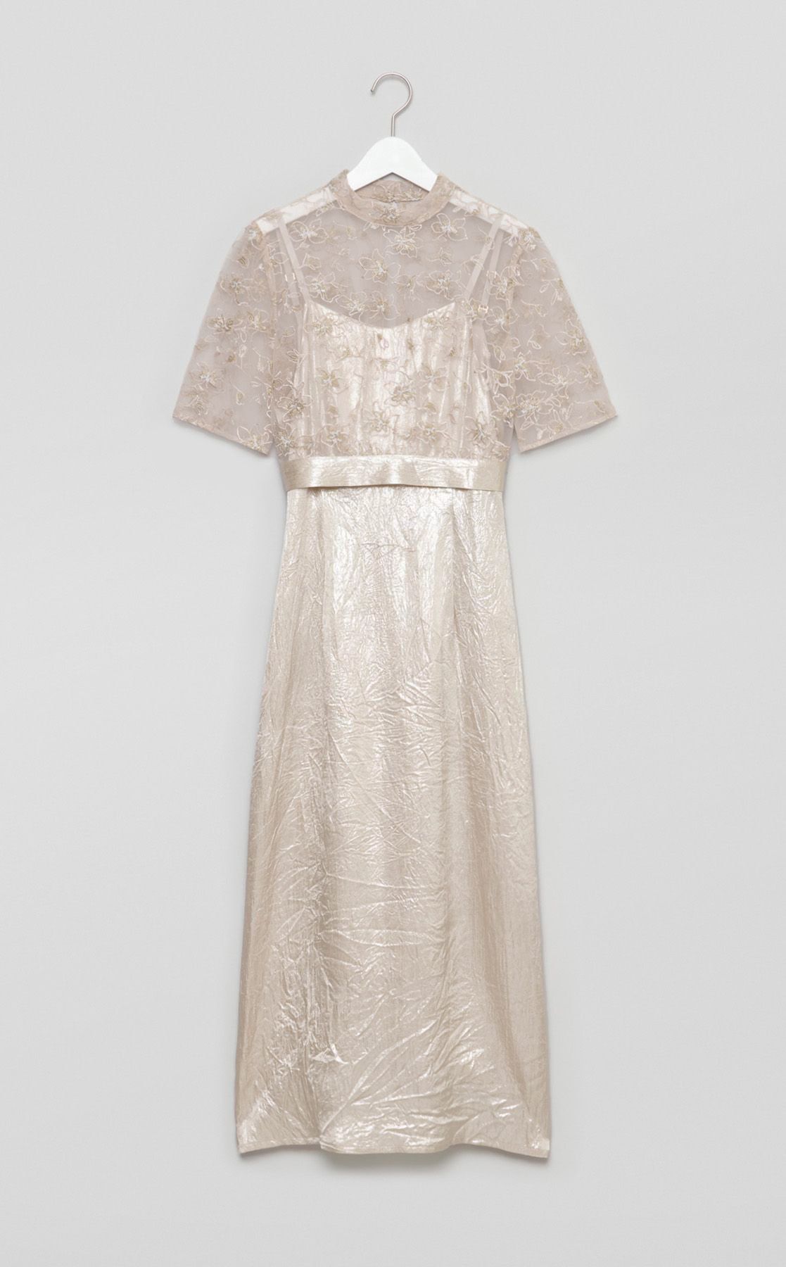 ・トップス(本体):ナイロン100% 基布ナイロン100% 刺しゅう糸ポリエステル100% (別布):アセテート100% ワンピース(表地) アセテート100% (裏地):ポリエステル100%