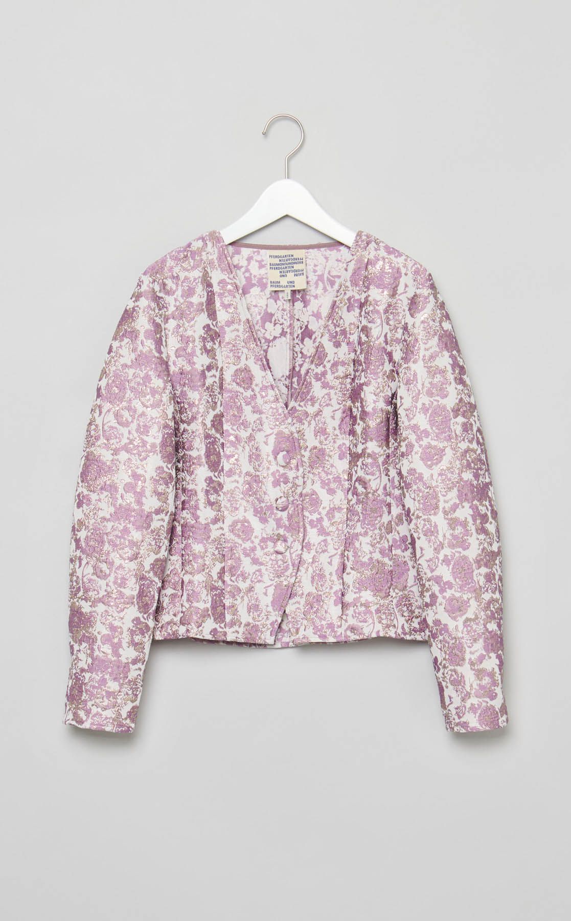 素材に金糸が入っているのに裏地無しでチクチクする。一番目立つ背裏の処理がロックミシン。恥ずかしくて脱げない。デザインはダーツではなくパーツなので布を無駄に使う割に袖はシンプル。パターンに疑問。