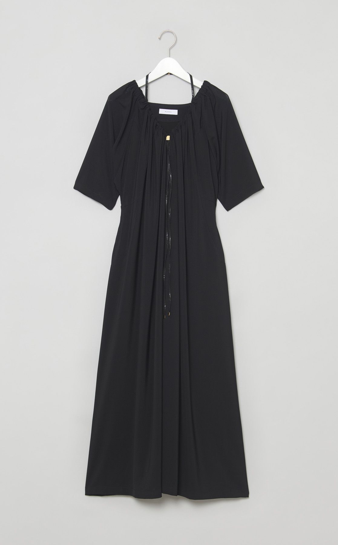 Vネックドローコードギャザーワンピース