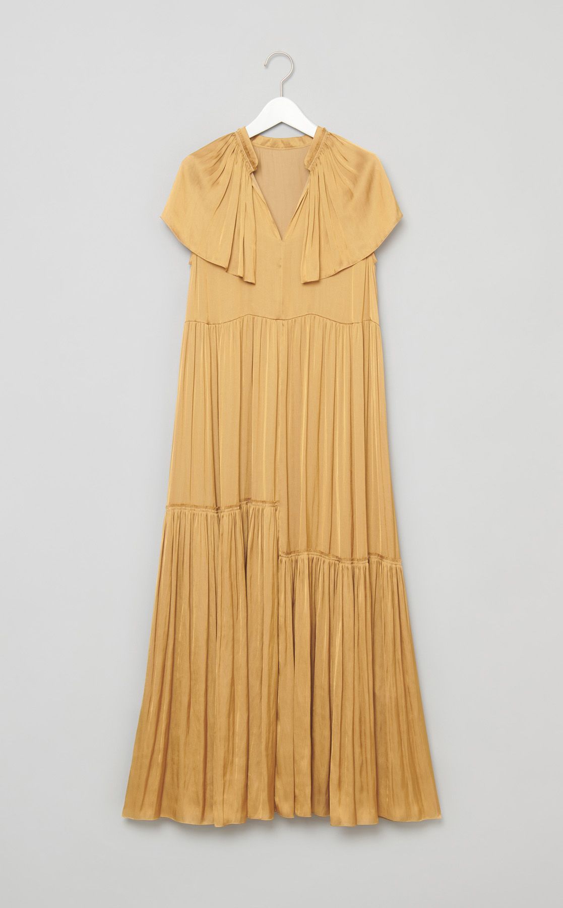 サテンギャザーフレアワンピース