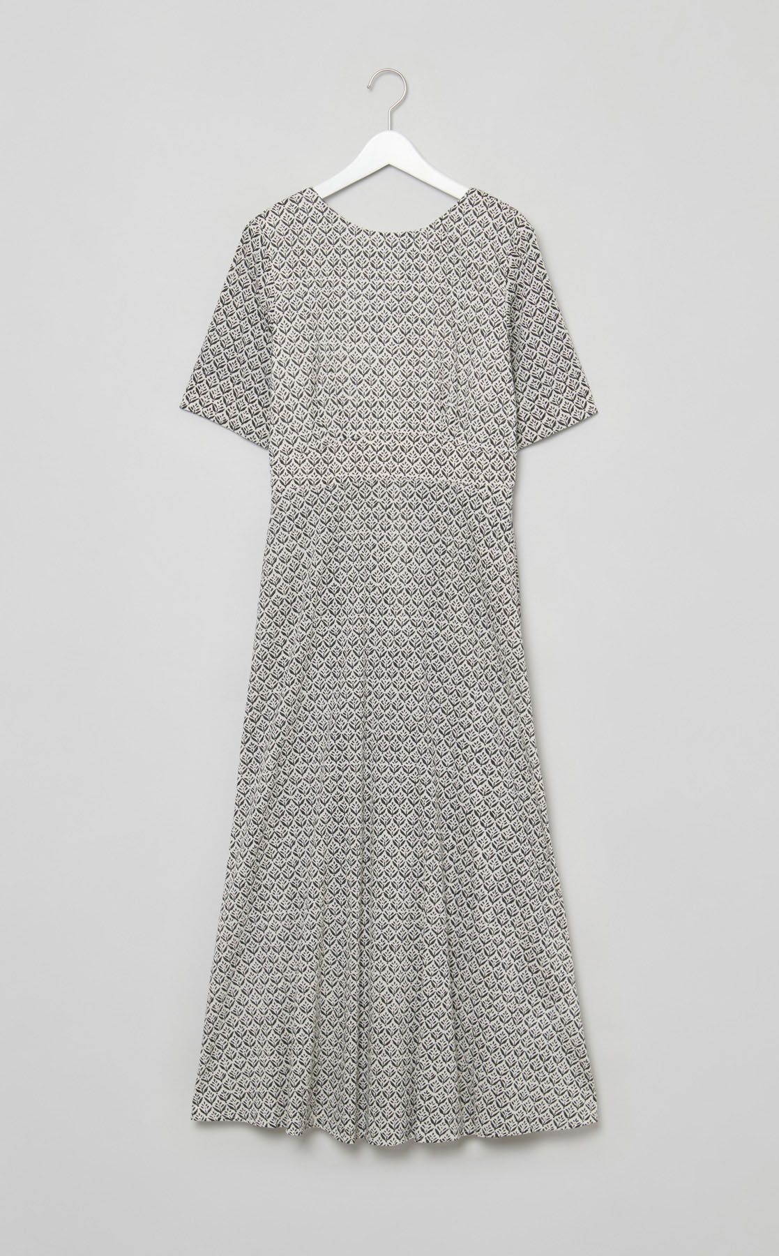 少し丈が長めですが、3センチくらいのヒールで着ることができました。背中がV字に開いているデザインがとてもかわいいです。