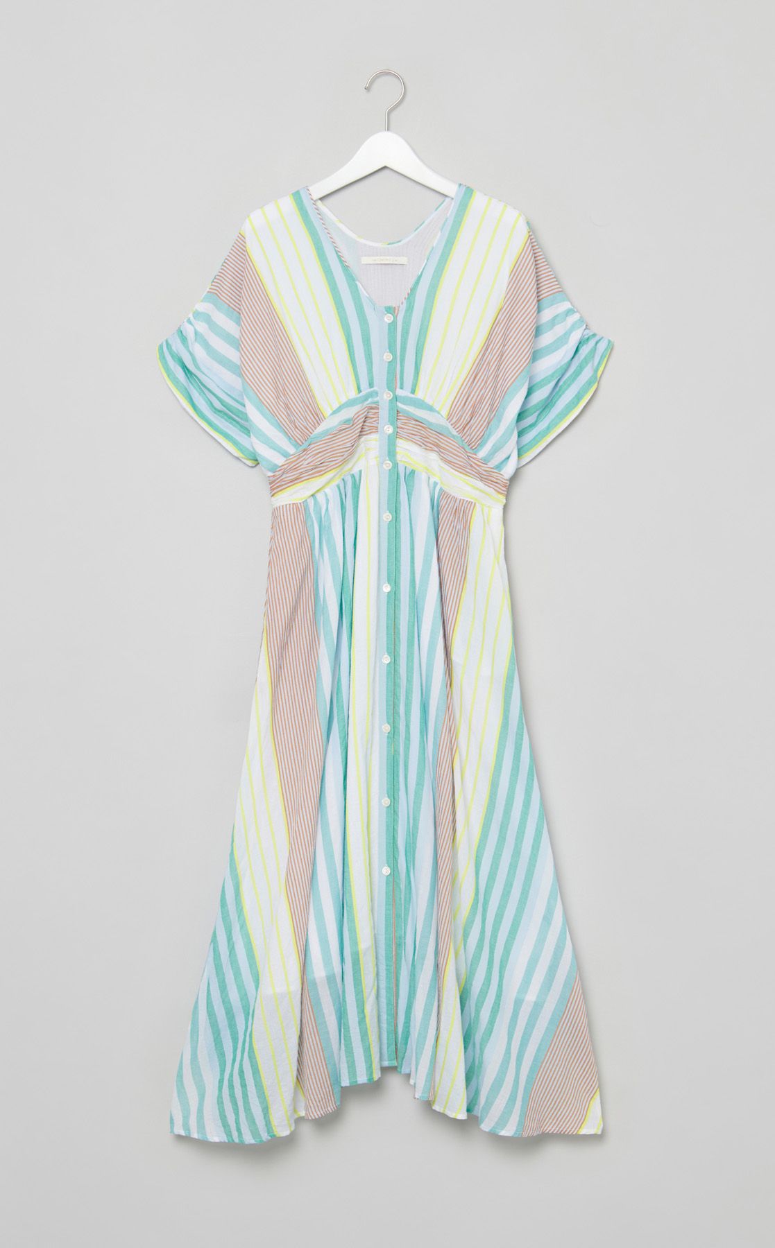 柔らかいガーゼのようなコットン素材。夏向きです。バスト下でギュッと切り替えがあるので、胸が大きい人はやや強調される感があるかも。