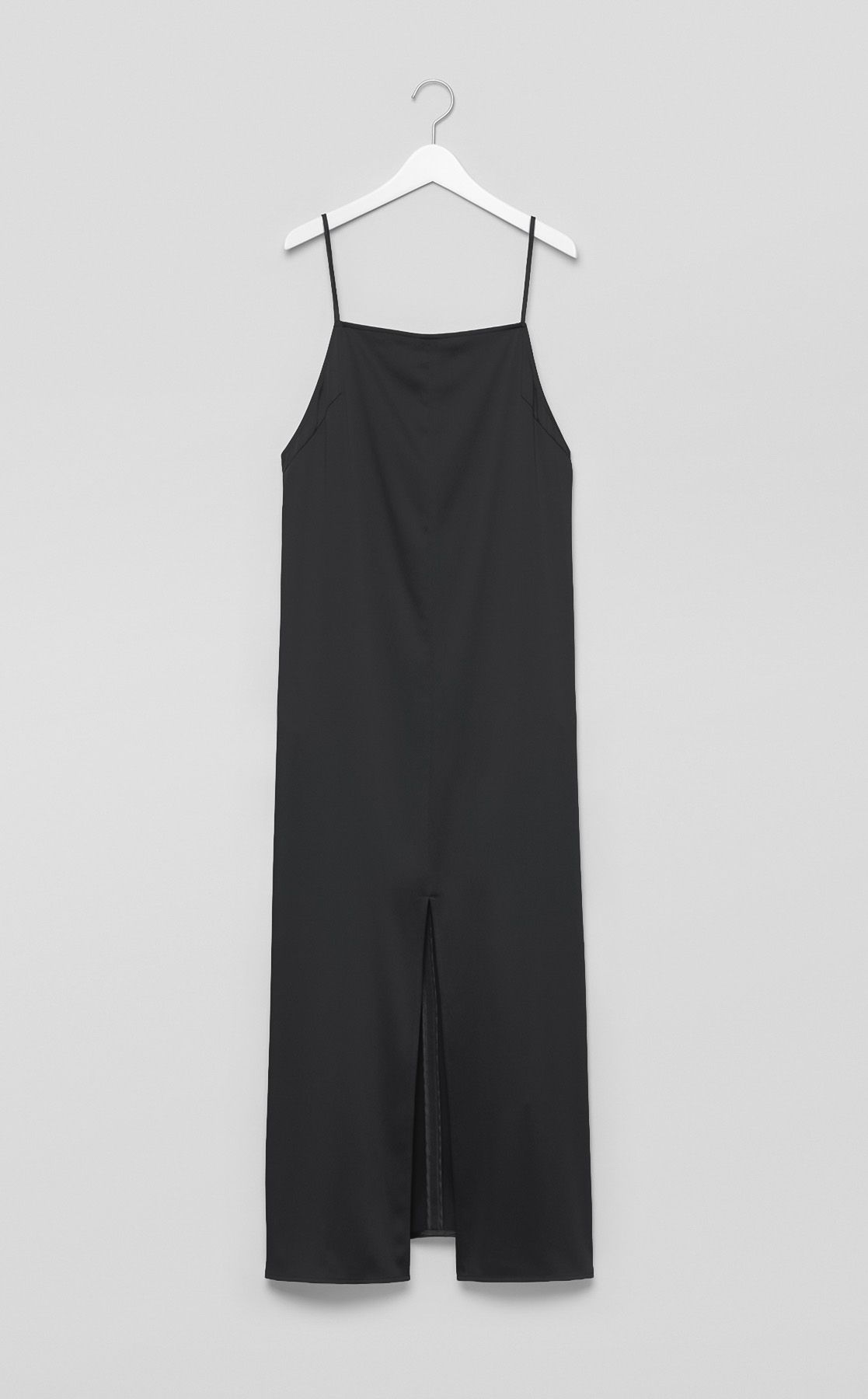 真ん中に、大きなスリットが入ってます。かなり足が見えてしまう。座ると太腿近くまで見えてセクシーすぎる。着こなし難しすぎ断念。
