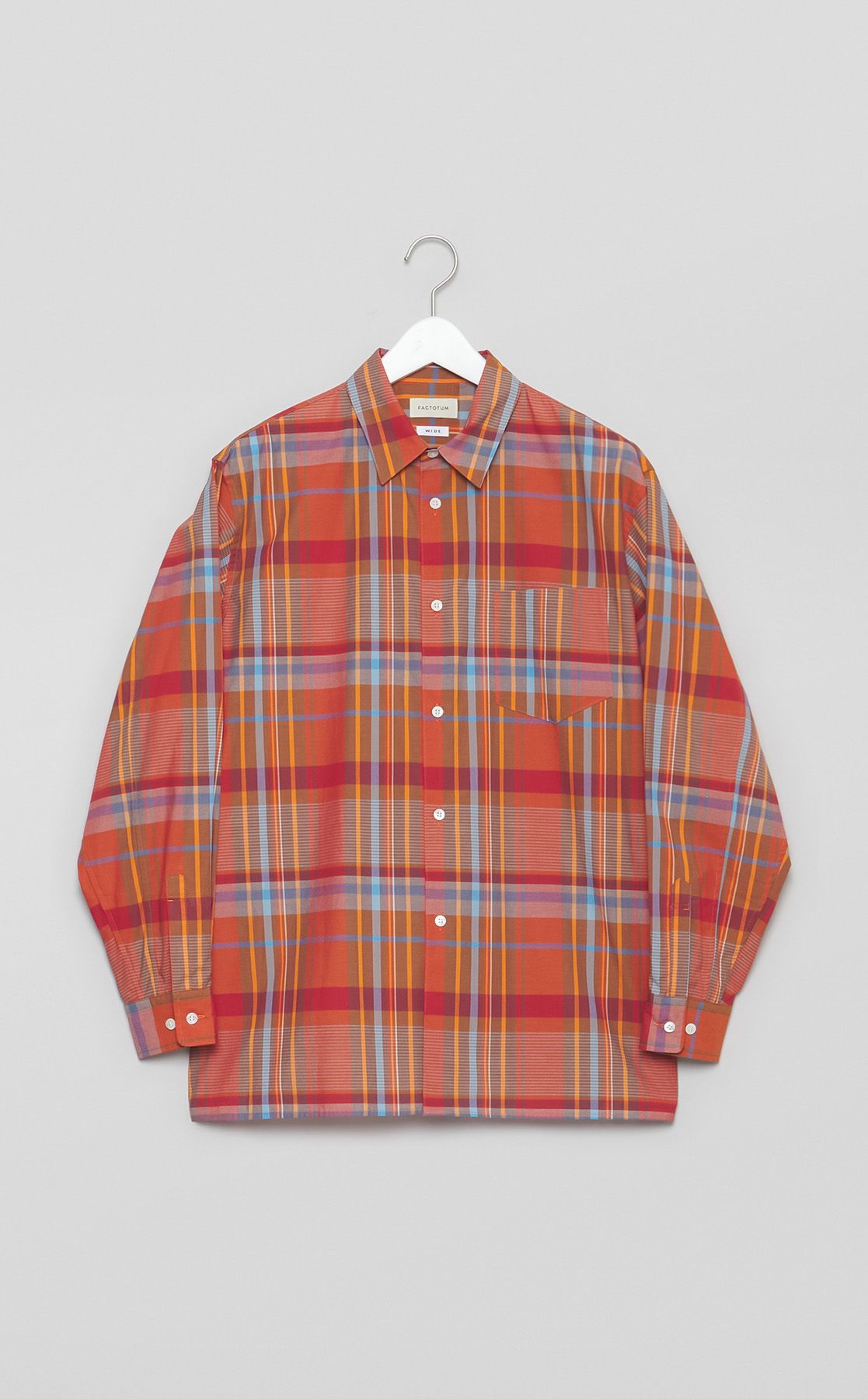 コットンチェックスクエアヘムシャツ
