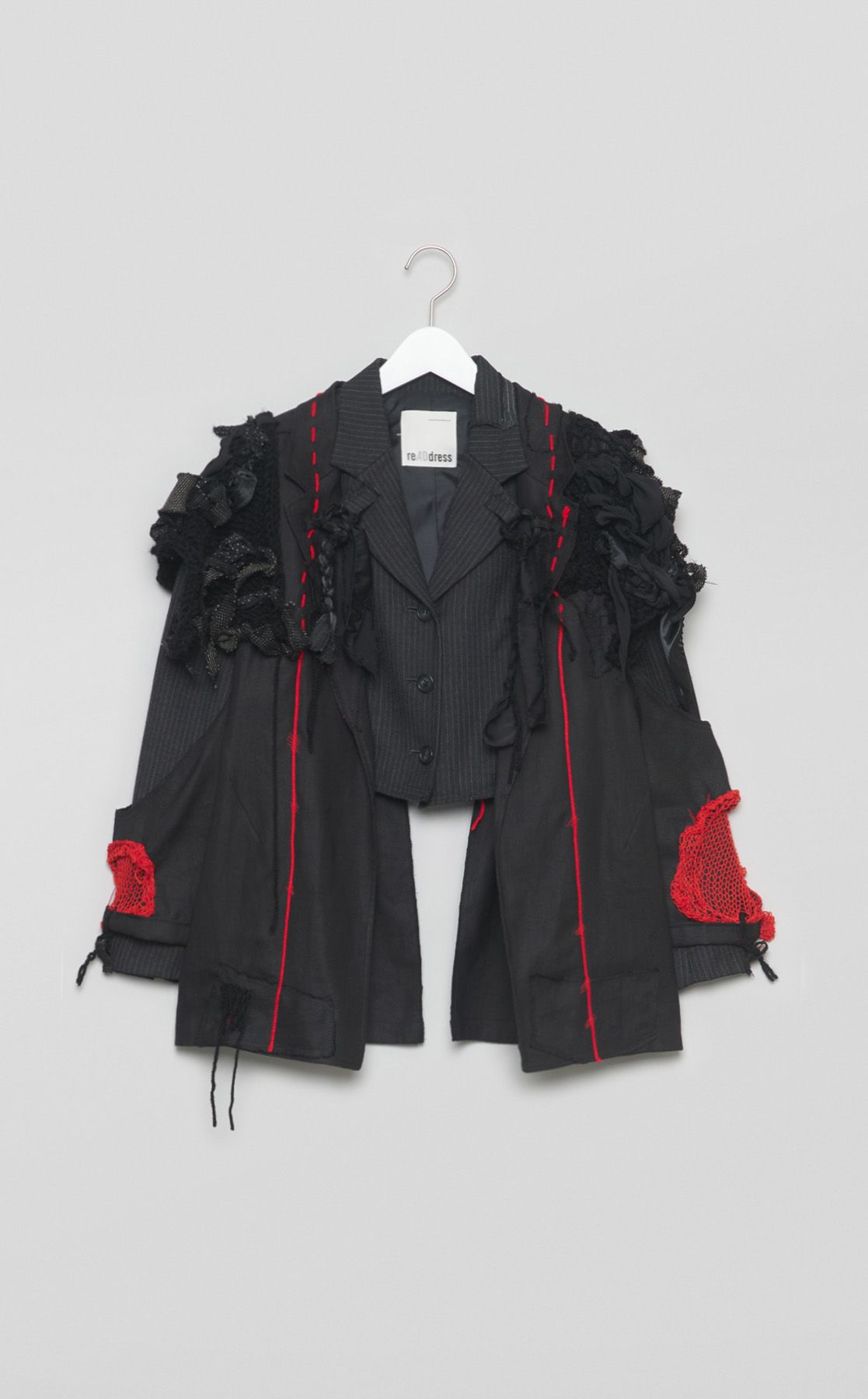 こちらの製品は、お客様から思い入れのあるお洋服を寄付していただいたものと、AnotherADdressのレンタルアイテムをリメイクしております。レンタルとしての使用が難しくなったアイテムを素材として使用しており、製品の特性上、キズやシミ、ほつれなどが見られる場合がありますが、その独自の風合いをお楽しみいただけます。