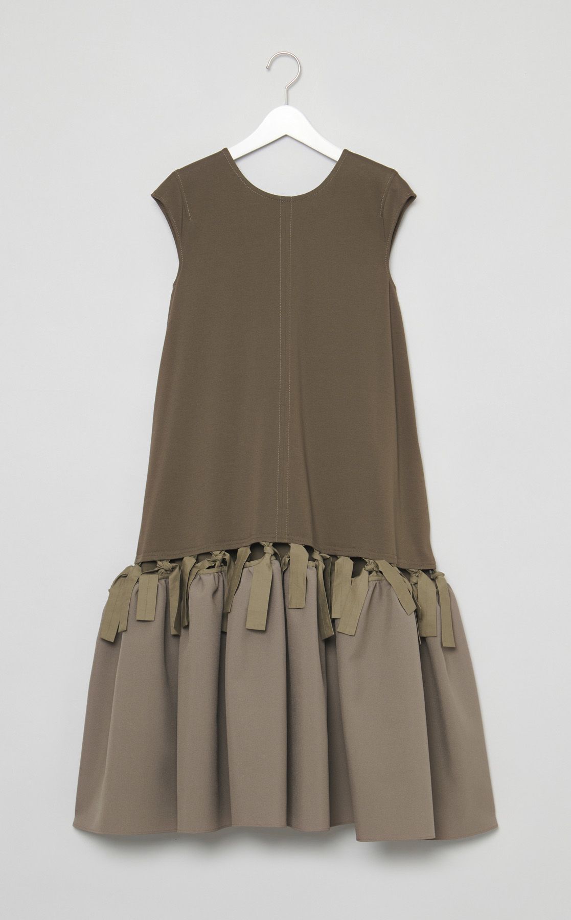 裾のフリルのデサインがとても可愛いです。胸元の開き具合と腕のホールが私のサイズに合ってなかったのか、肩周りが太って見えるのが残念でした。あと全体的に重くて、ニット素材が臭いが付きやすいので、注意が必要そうでした。