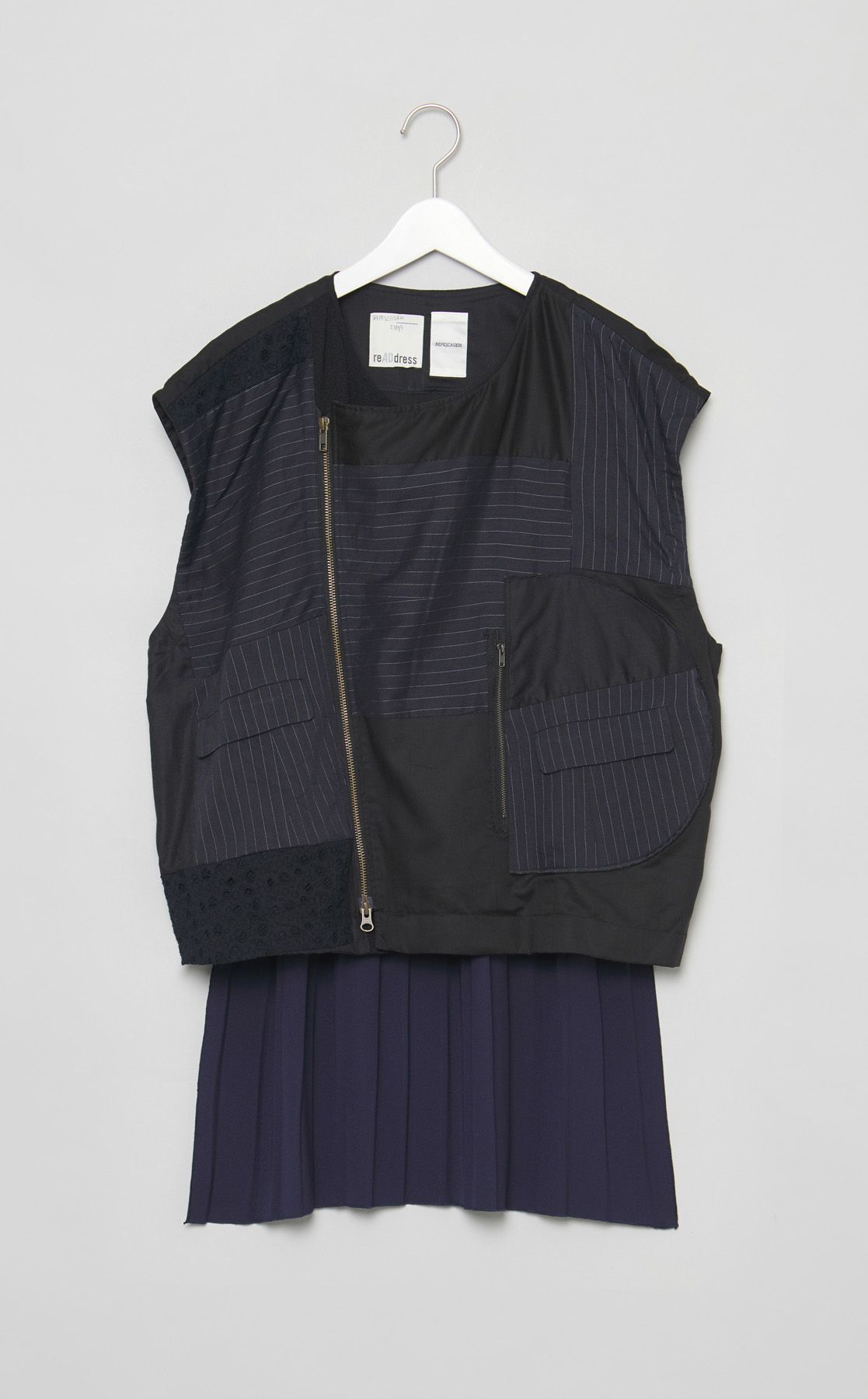 こちらの製品は、お客様から思い入れのあるお洋服を寄付していただいたものと、AnotherADdressのレンタルアイテムをリメイクしております。レンタルとしての使用が難しくなったアイテムを素材として使用しており、製品の特性上、キズやシミ、ほつれなどが見られる場合がありますが、その独自の風合いをお楽しみいただけます。