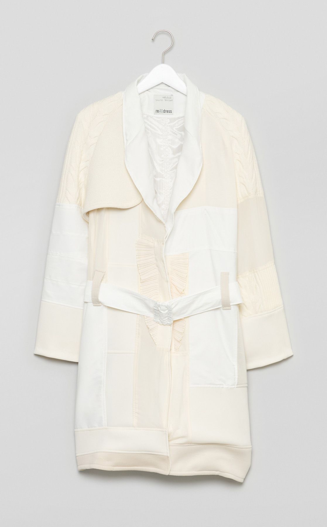 こちらの製品は、お客様から思い入れのあるお洋服を寄付していただいたものと、AnotherADdressのレンタルアイテムをリメイクしております。レンタルとしての使用が難しくなったアイテムを素材として使用しており、製品の特性上、キズやシミ、ほつれなどが見られる場合がありますが、その独自の風合いをお楽しみいただけます。