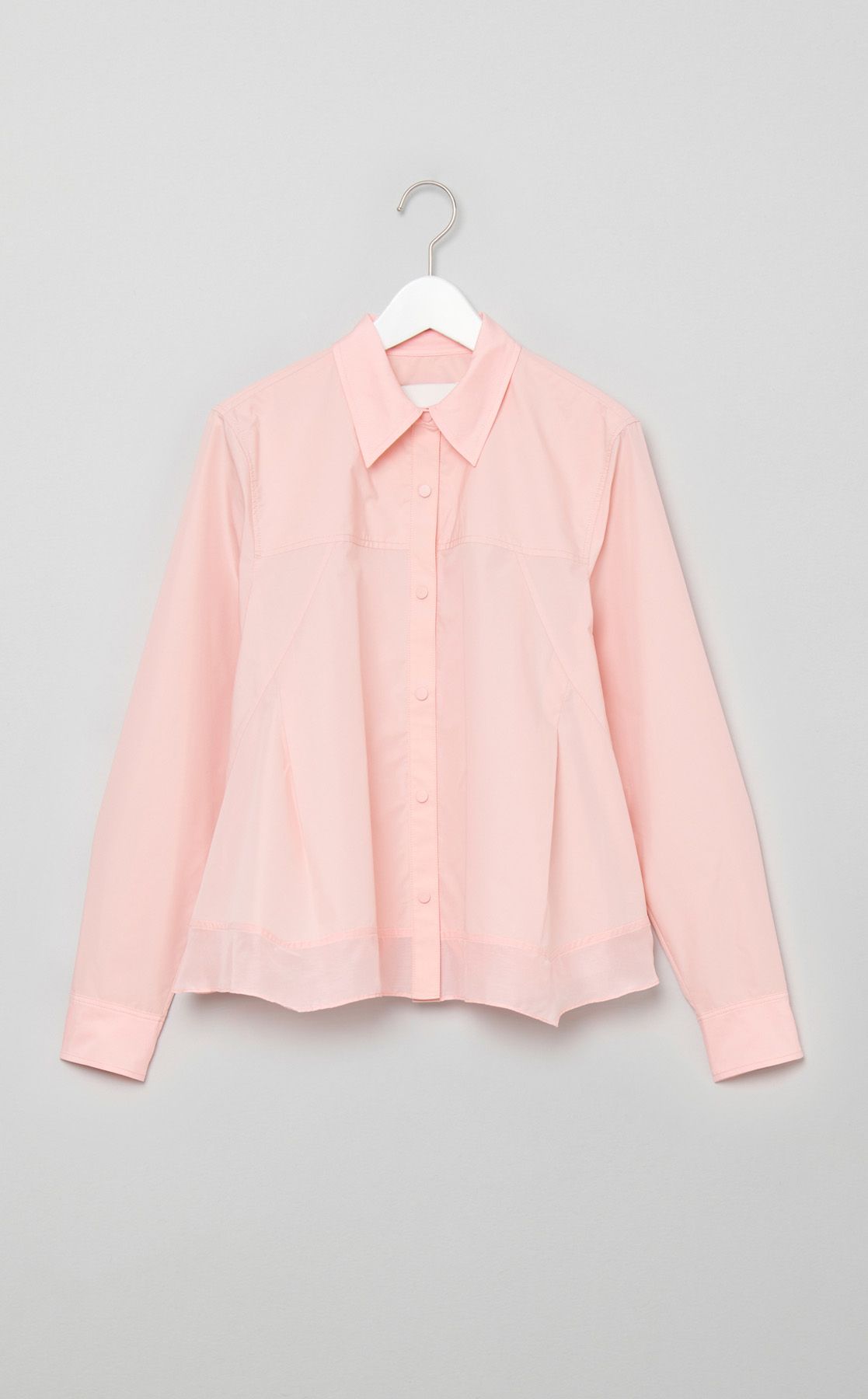 異素材ヘムフレアシャツ
