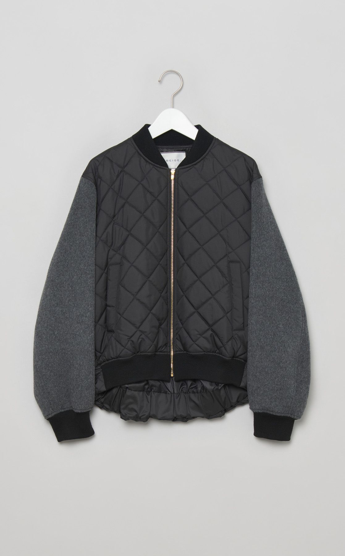 ・表地:ポリエステル100% 中わた:ポリエステル100% 袖:毛100% リブ部分:アクリル62% 毛25% ナイロン11% ポリウレタン2% 裏地:ポリエステル100%