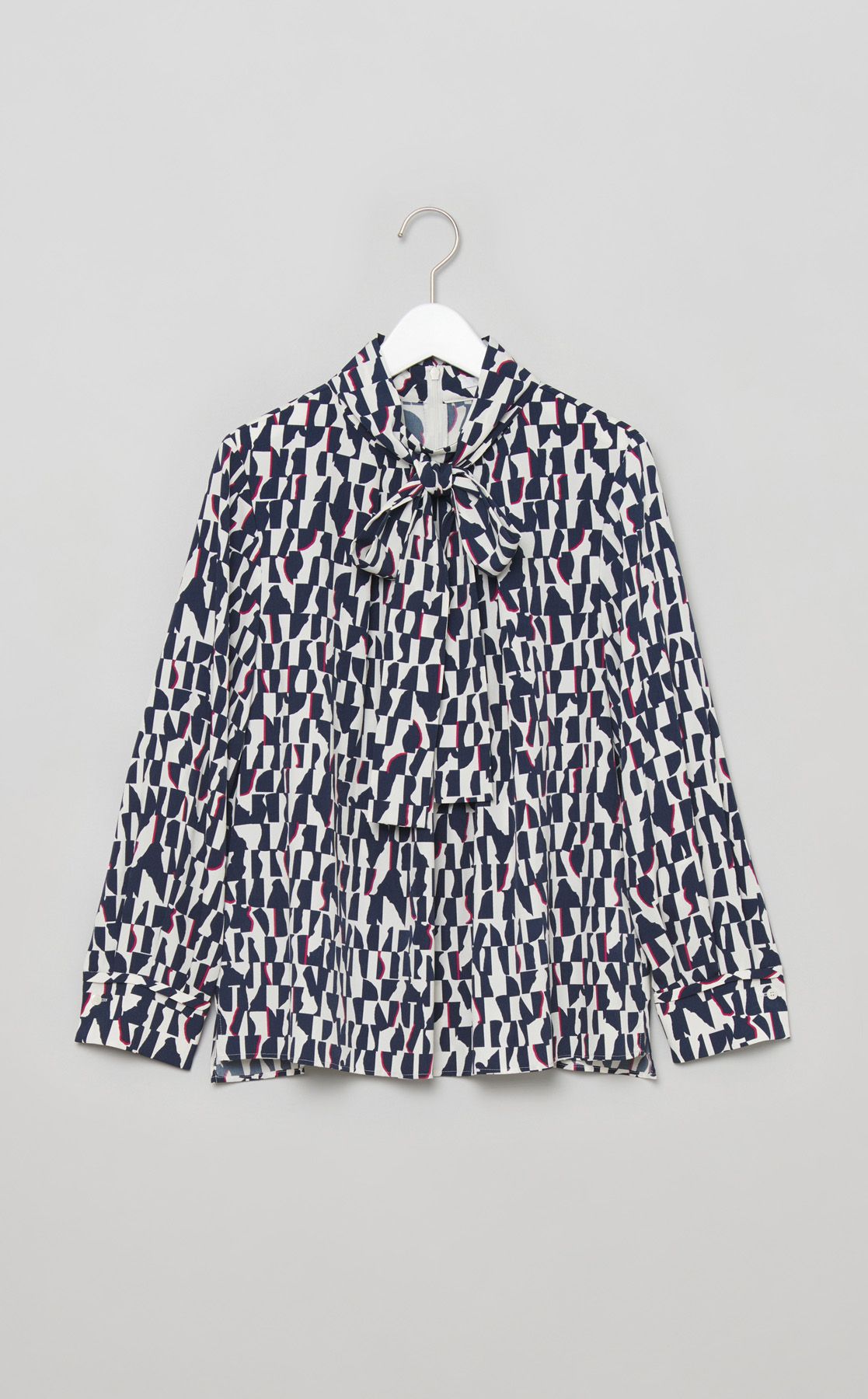 ジノリプリントボウタイブラウス