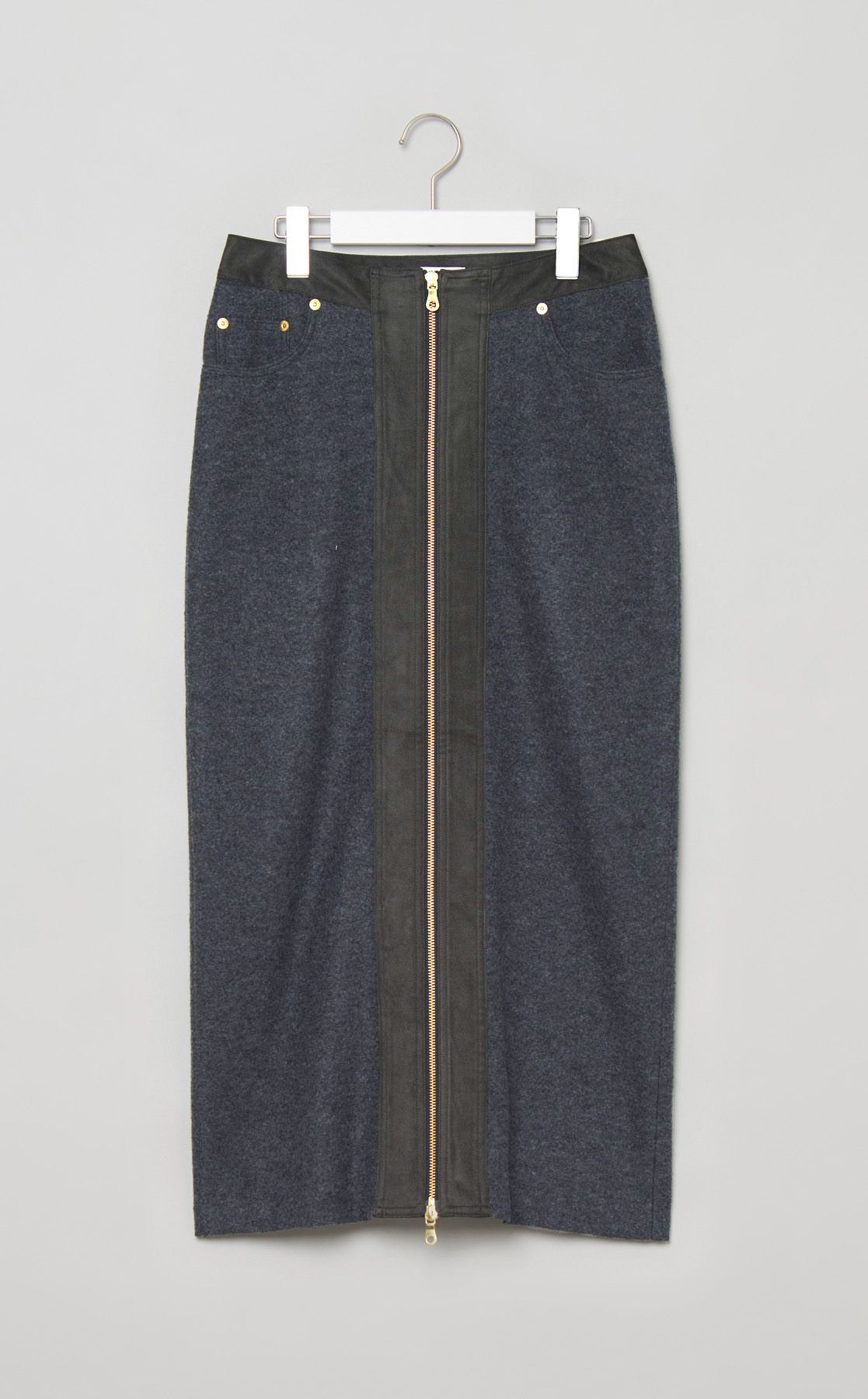 ウールフロントファスナーミディスカート