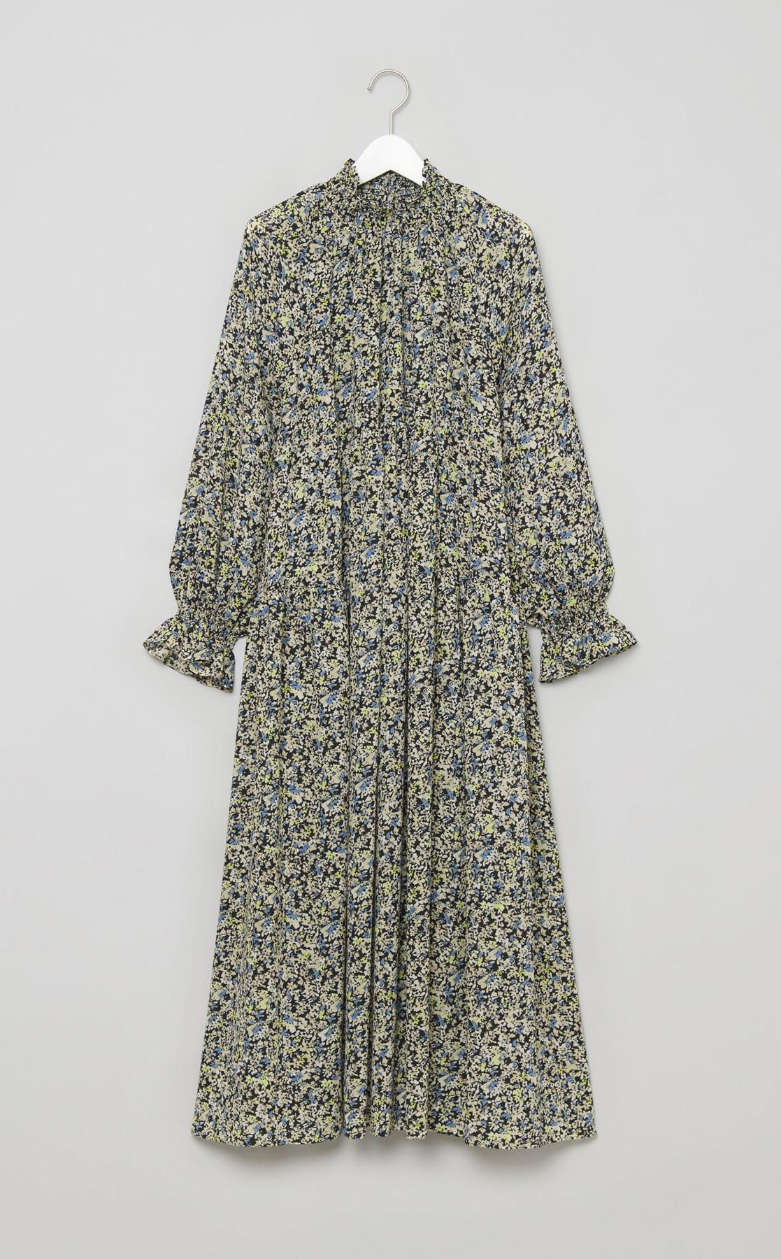 フラワープリントシャーリングワンピース