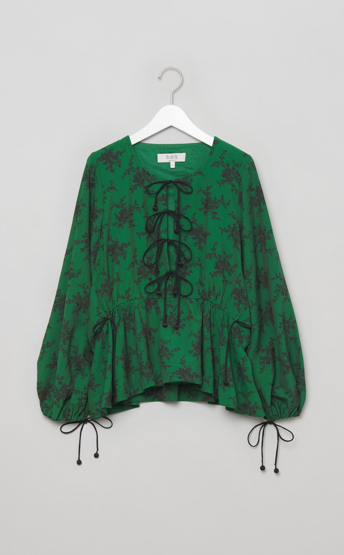 フラワープリントドローコードブラウス