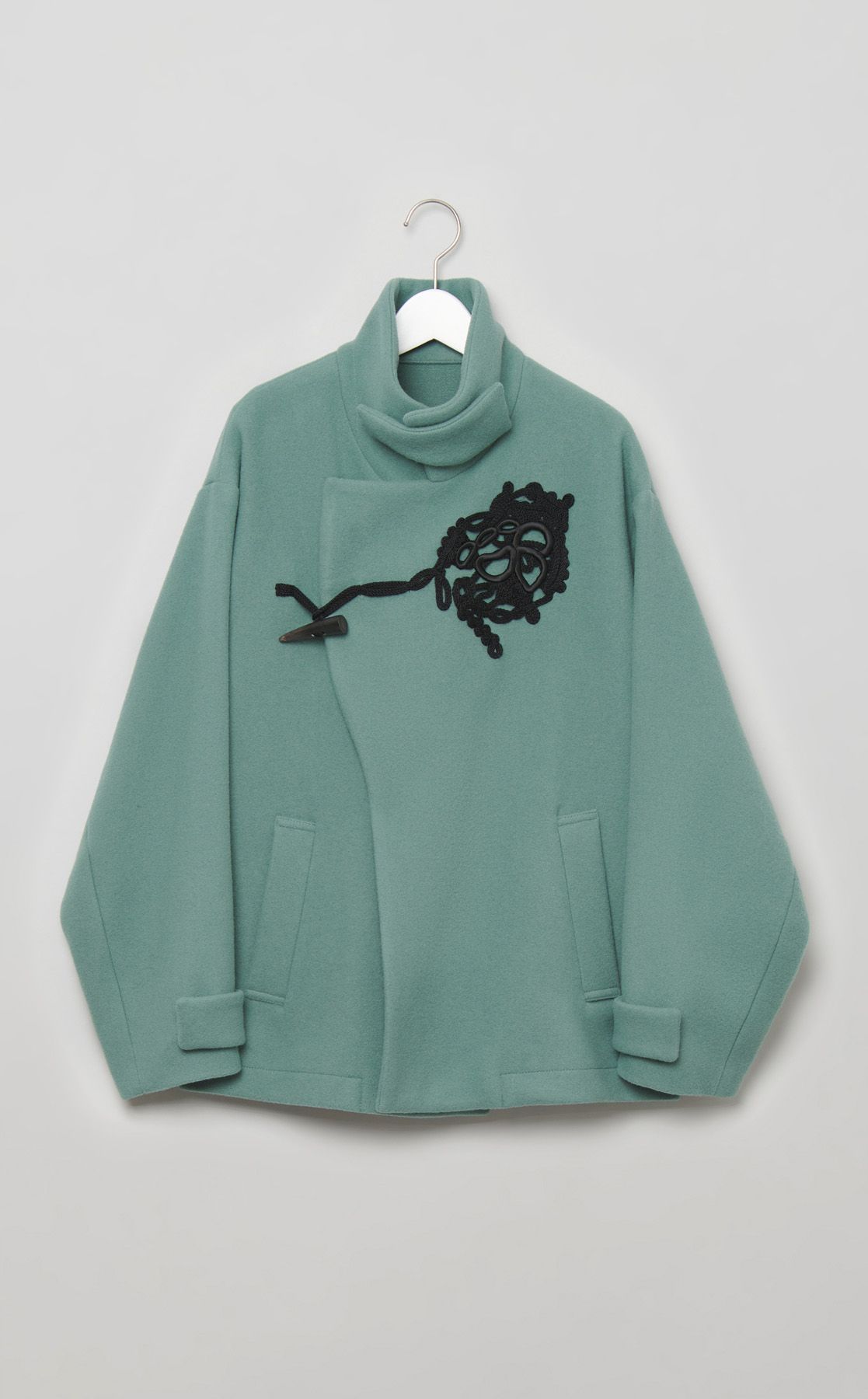 ・表地:毛97% ナイロン3% 身頃裏地:レーヨン57% 綿43% 袖裏:キュプラ100% パーツ:綿100% 刺繍糸:レーヨン100%