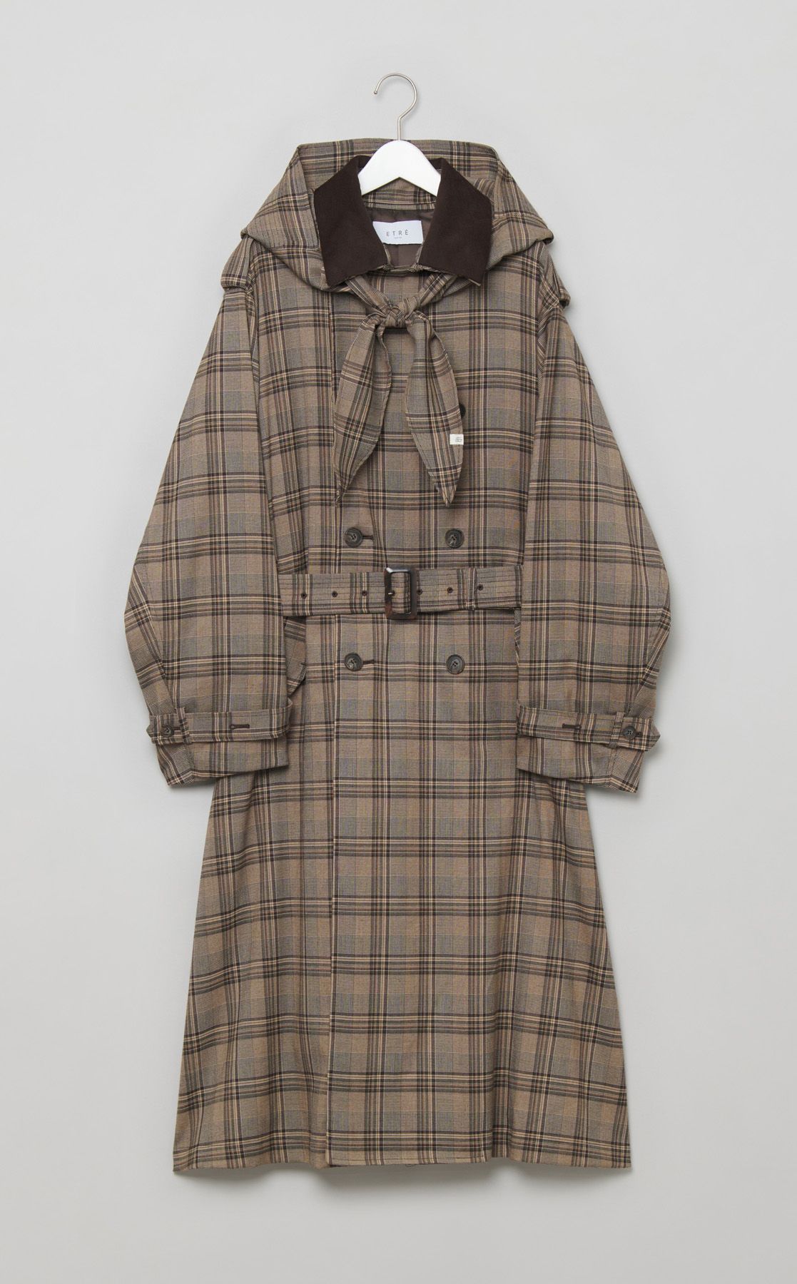 フードストールロングトレンチコート