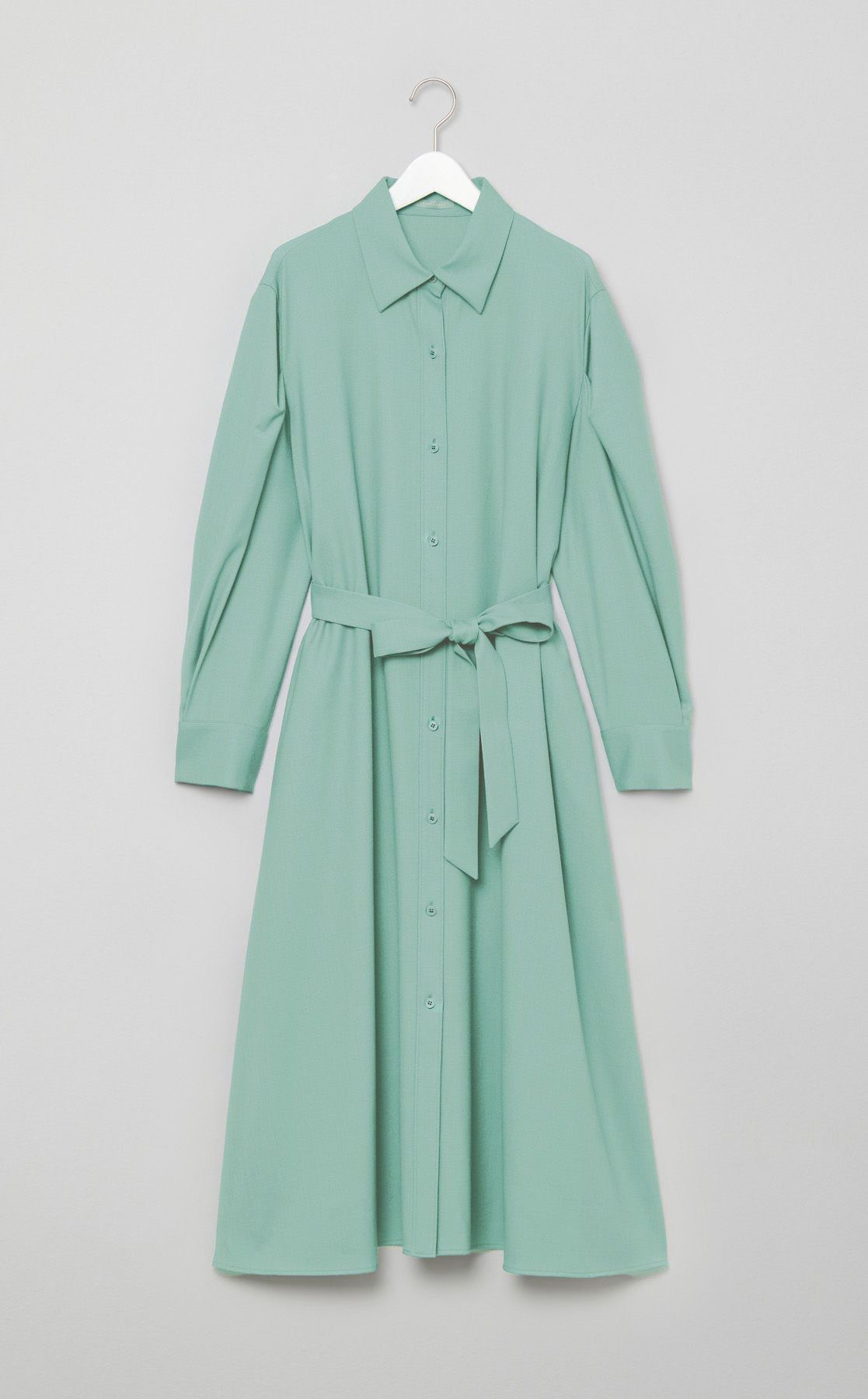ベルト付きウールシャツワンピース