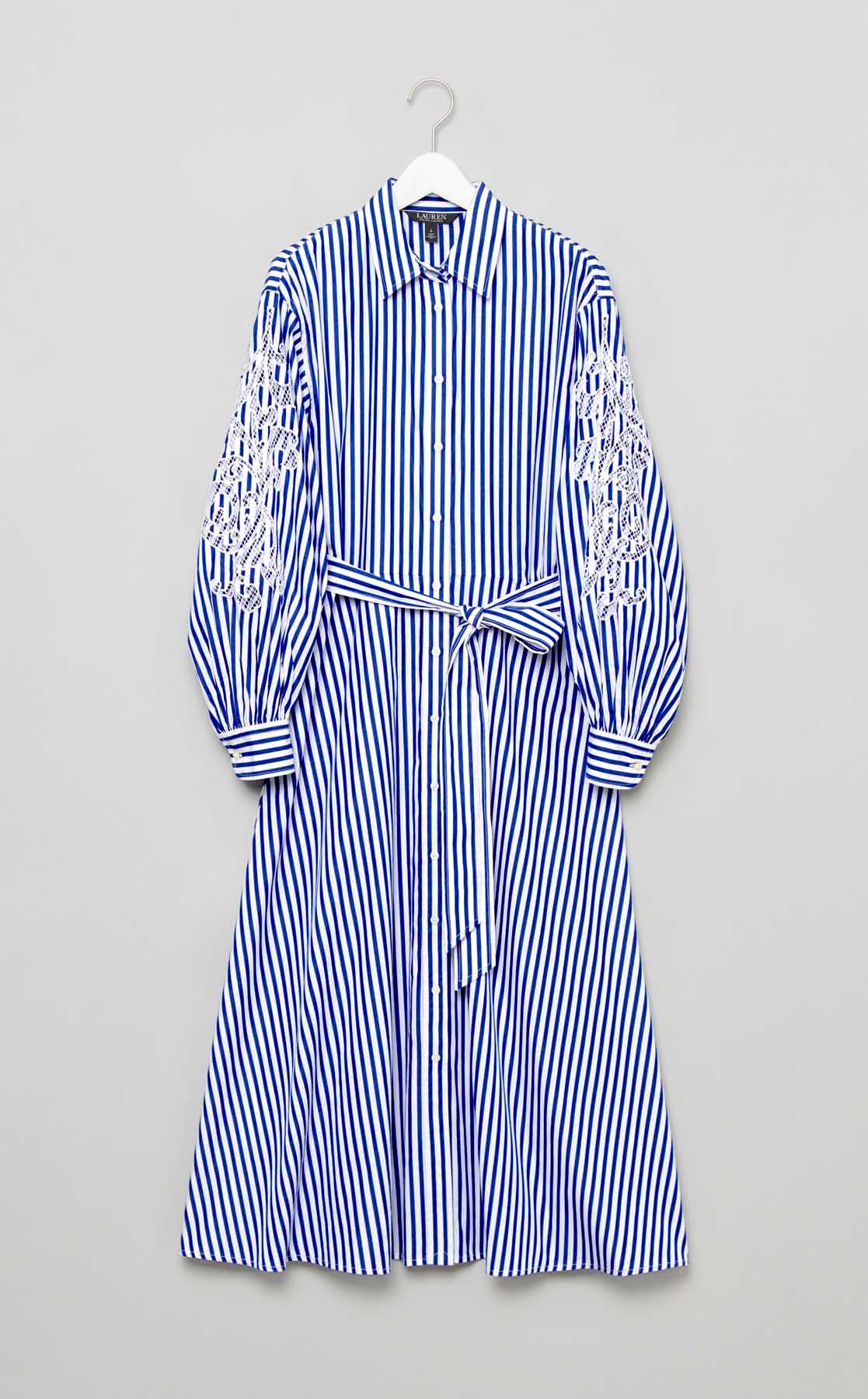 ストライプアイレットシャツワンピース