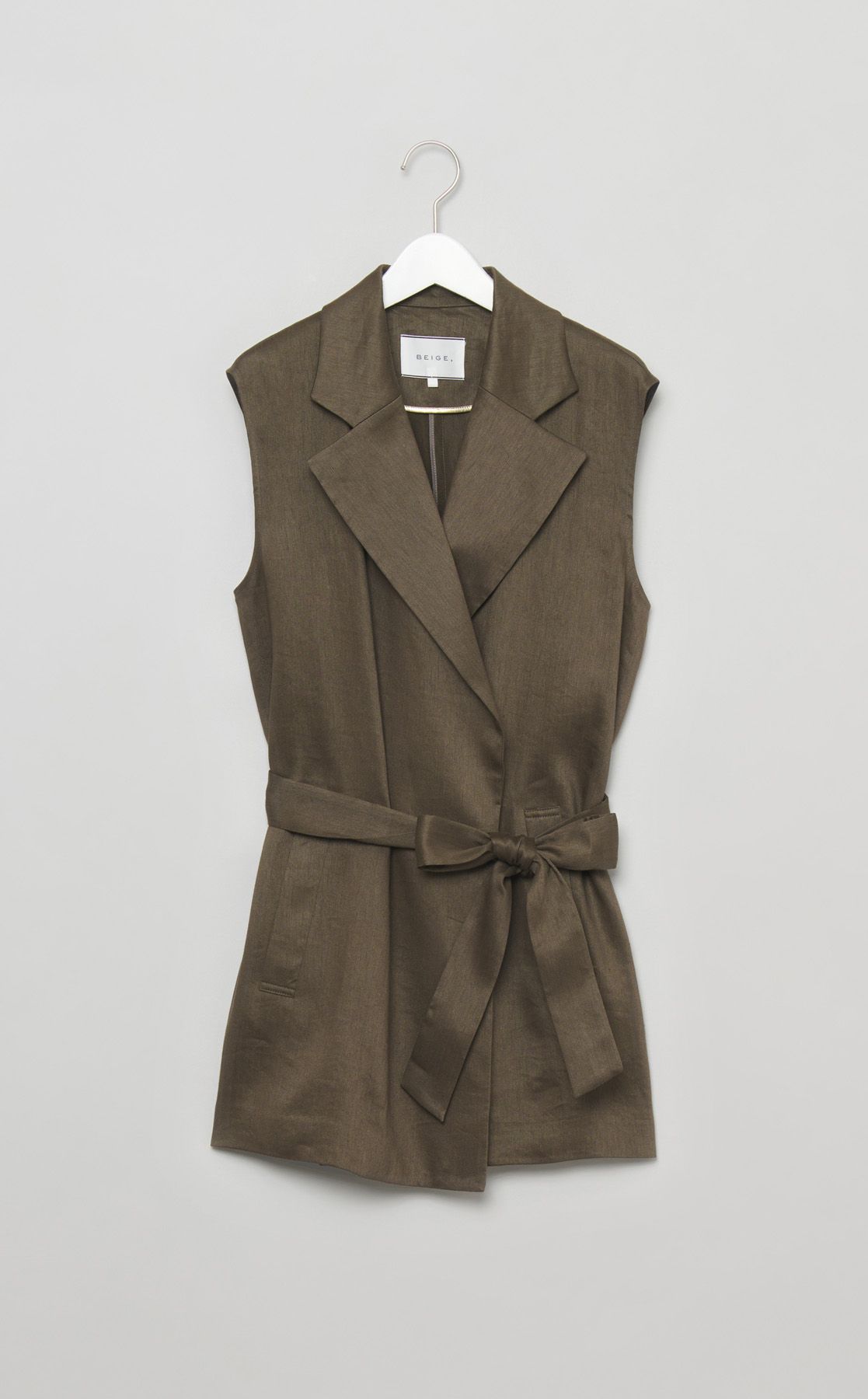 リネンミックスベルト付きジレ