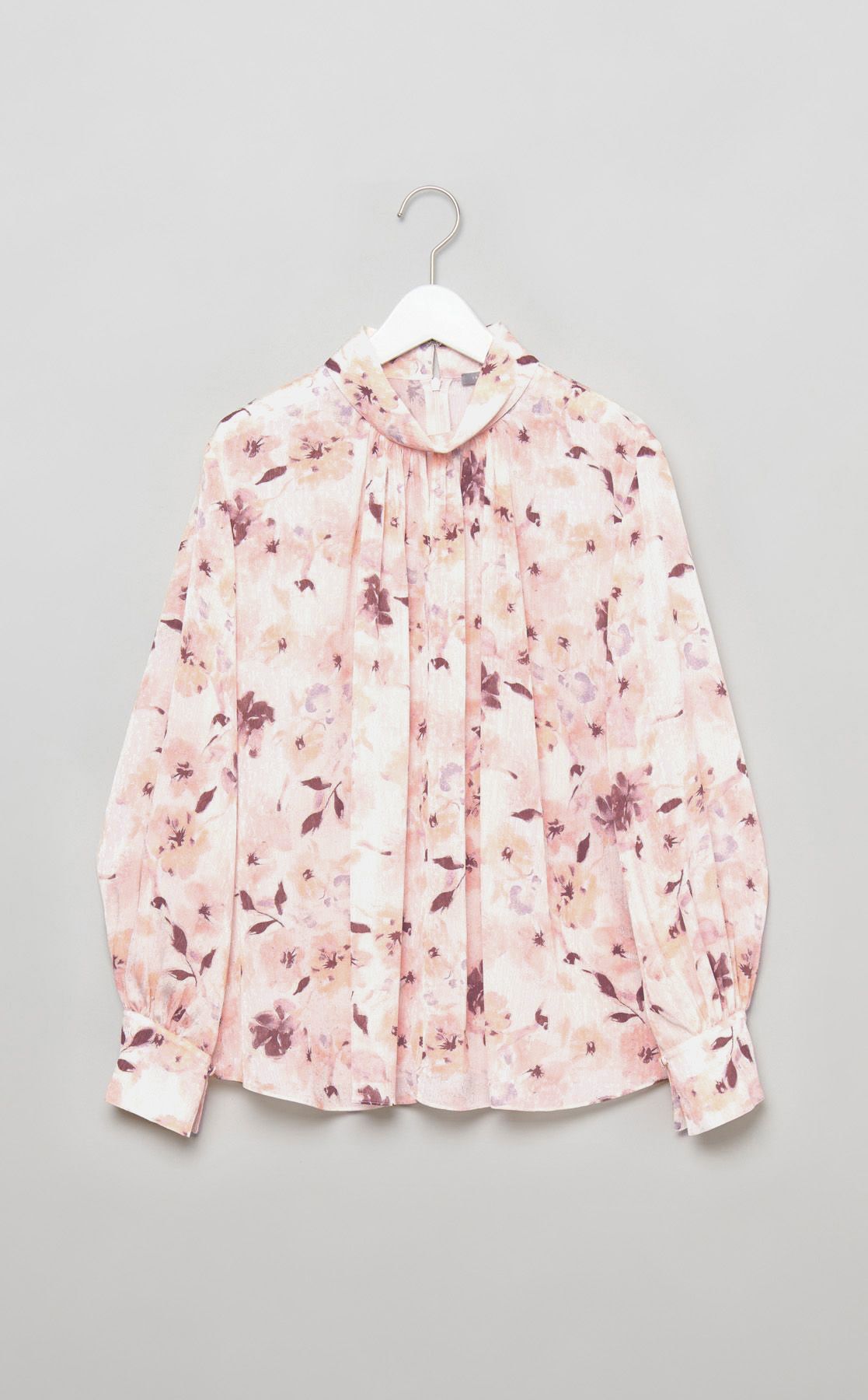 フラワープリントスタンドカラーシャツ