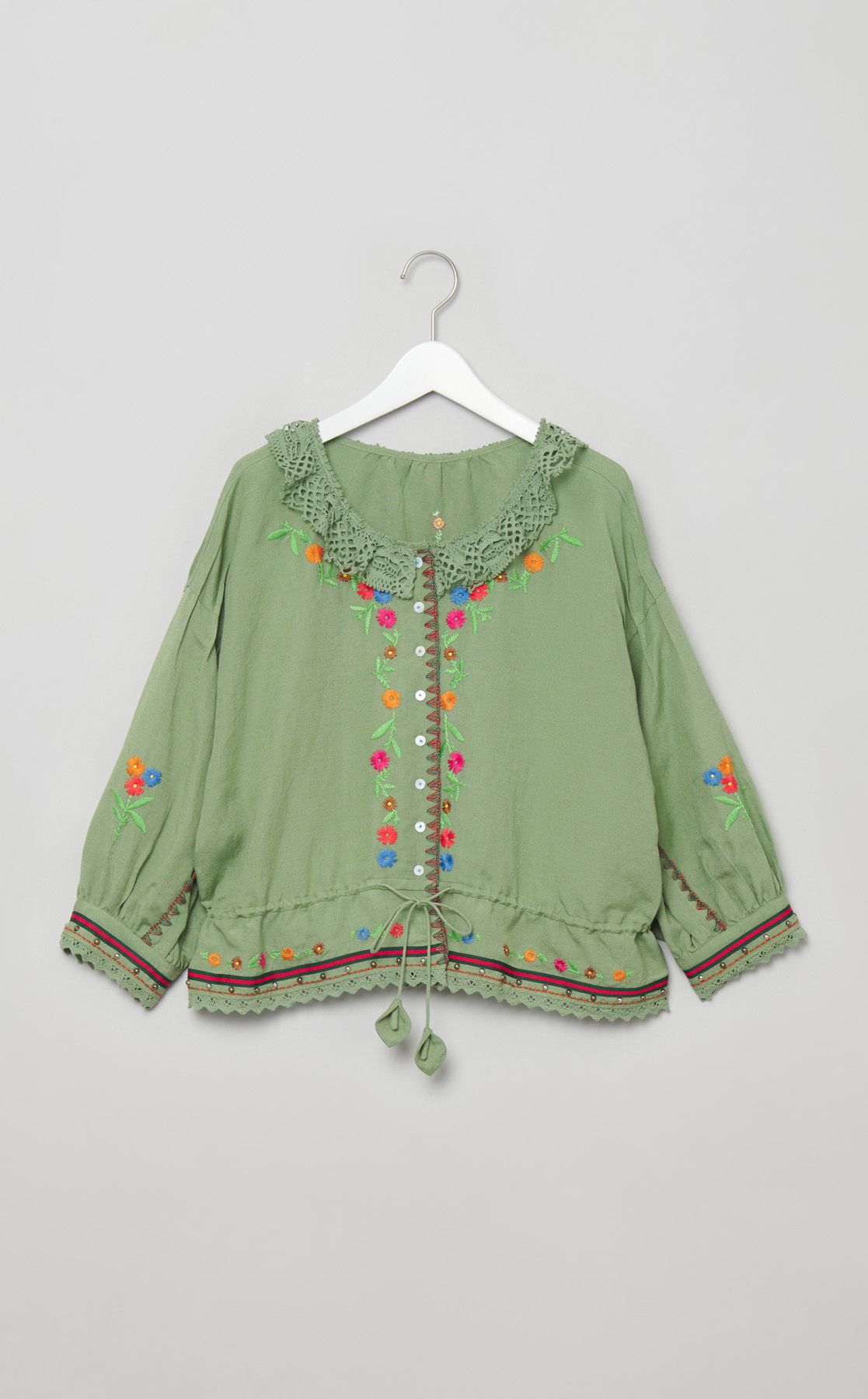 ・本体:麻55% レーヨン45% レース部分:綿100% テープ部分:ポリエステル100% 刺繍糸:綿100%