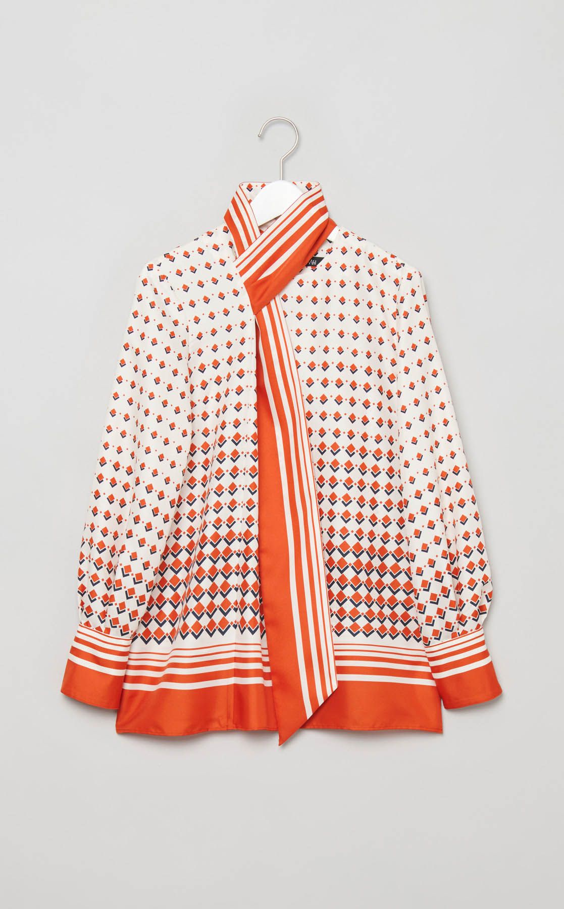 プリントボウタイブラウス