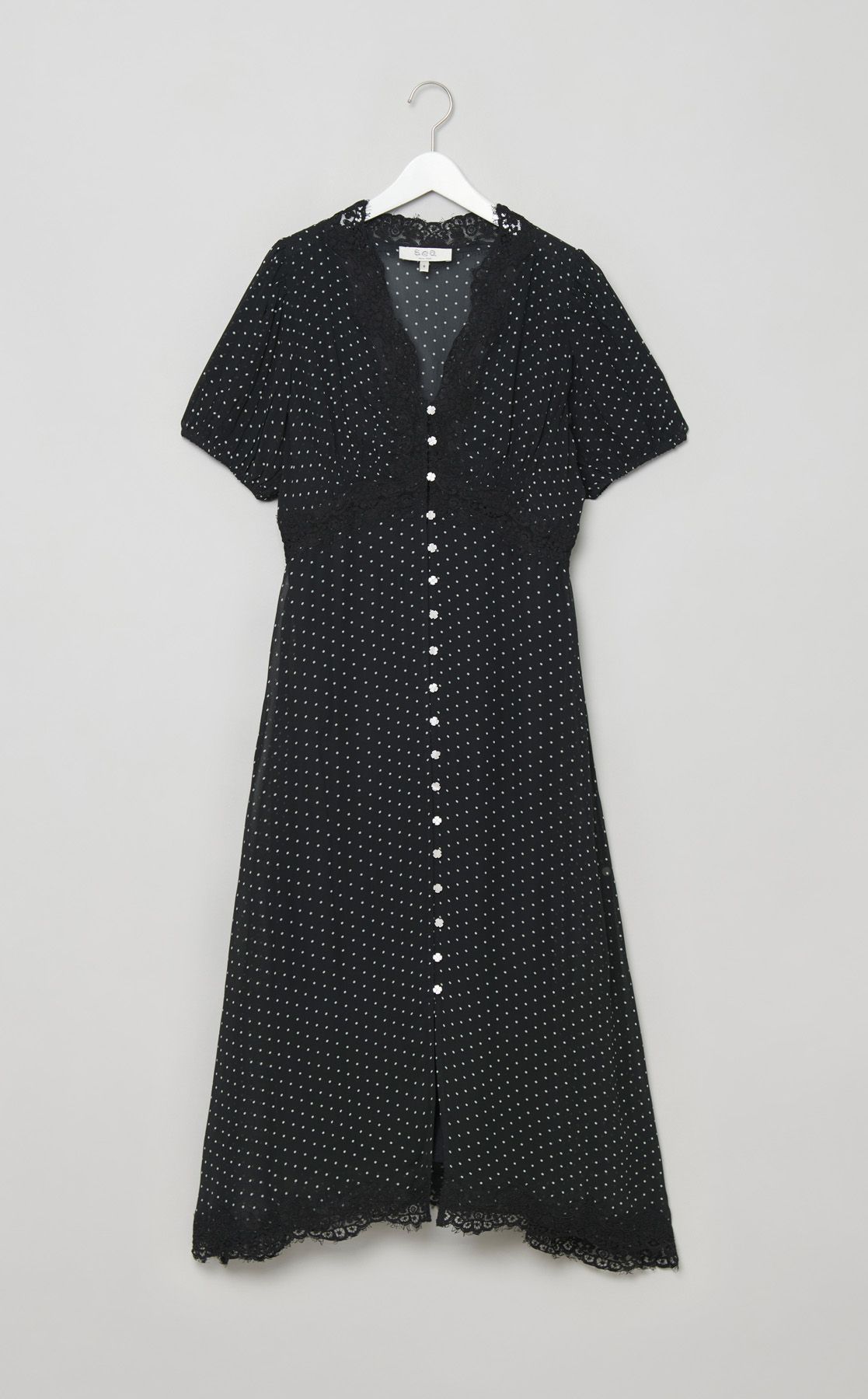ドットレースVネックワンピース