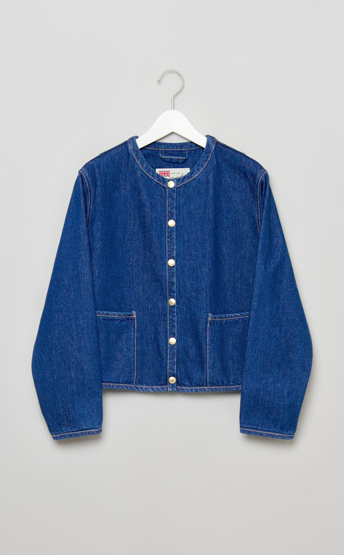 ノーカラーデニムジャケット