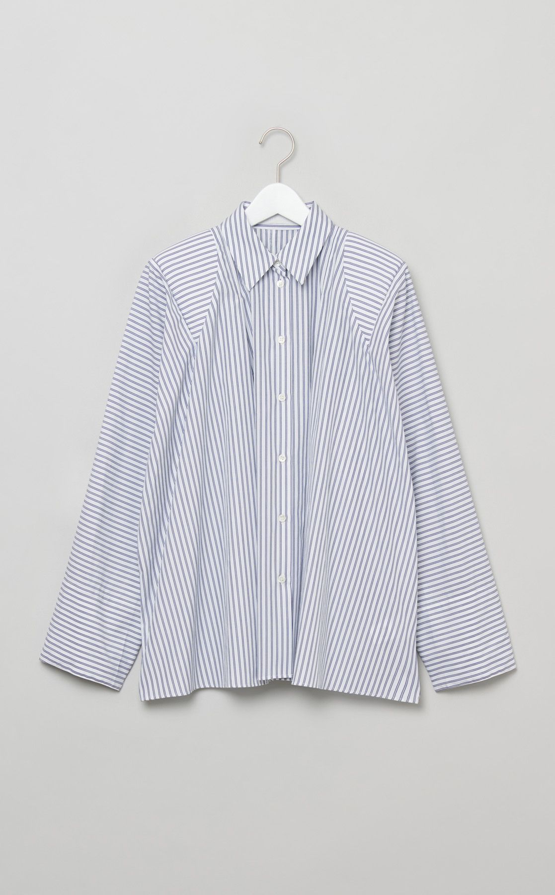 ショルダードレープストライプシャツ