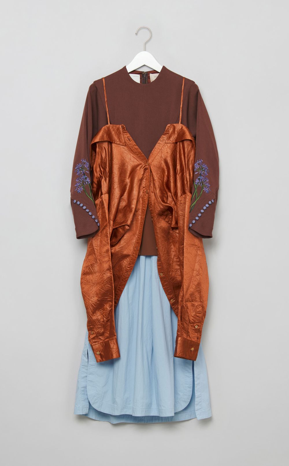 今回の作品制作に当たって、様々な商品や作り手の思いに触れることができました。いくつもの商品が合体して新しい商品になる姿は、愛することと似ているように感じました。そのため今回の作品はそれぞれの商品の良さがわかるように特徴的な部分を活かして、ディテールにはテーマの「hug story」は素材を愛することへの表現と、また新しい商品へ繋ぐことを表現しました。