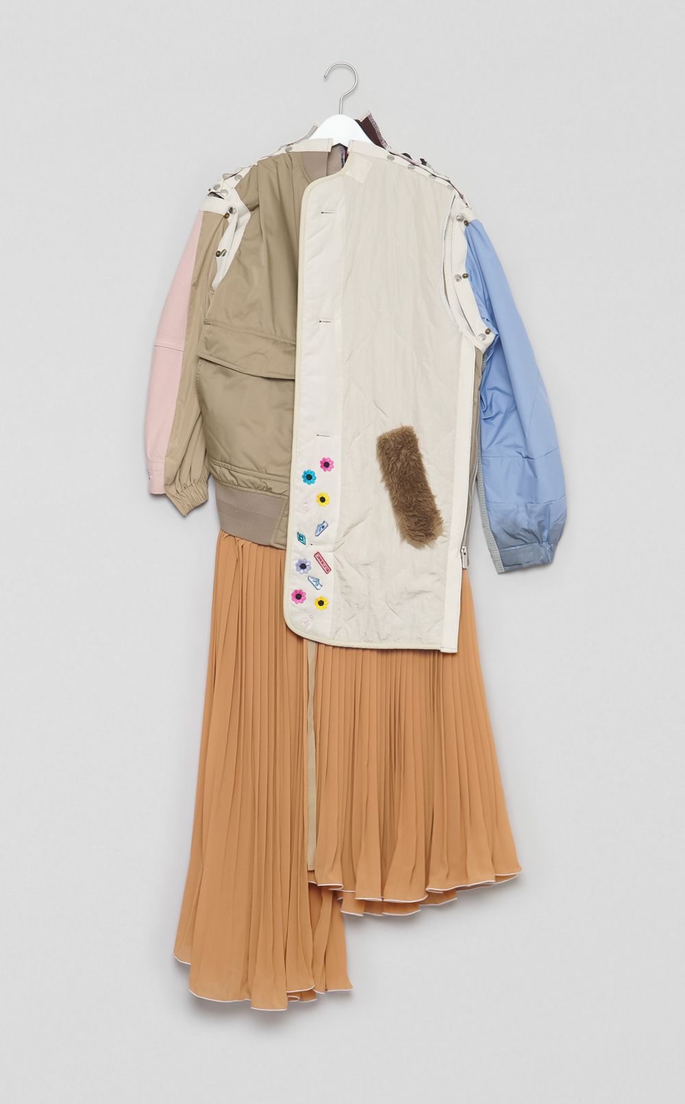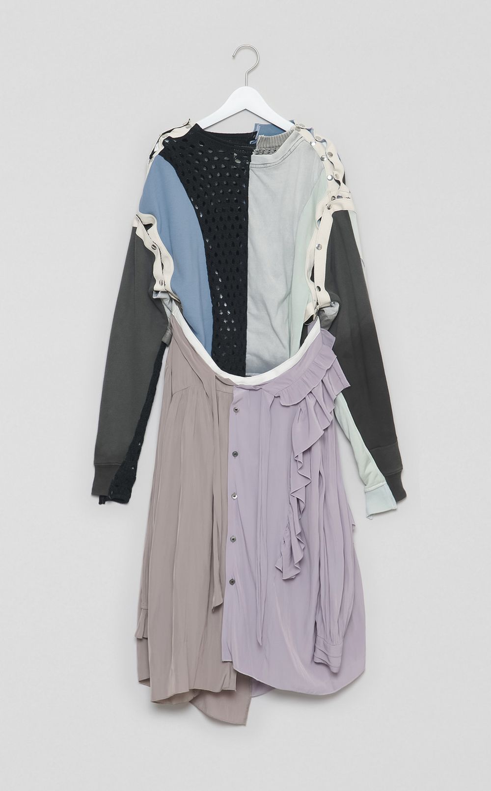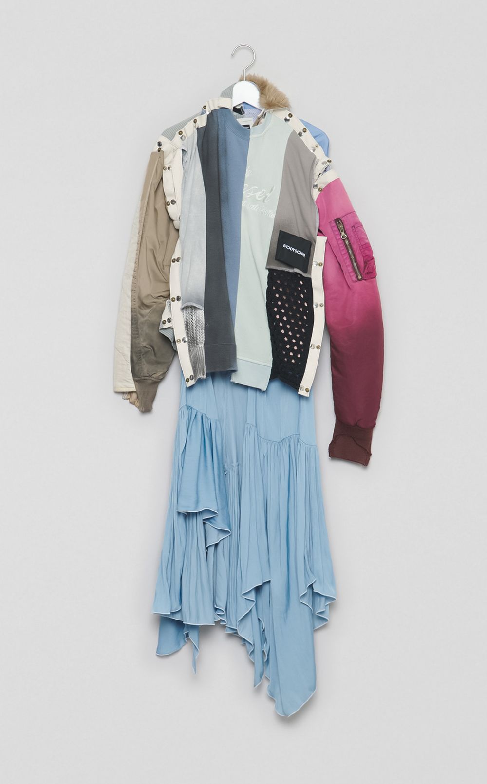 ブランドのロゴなどを排除した上で全てのパーツを解体し平等化。ランダムにパッチワークし1枚の布に。