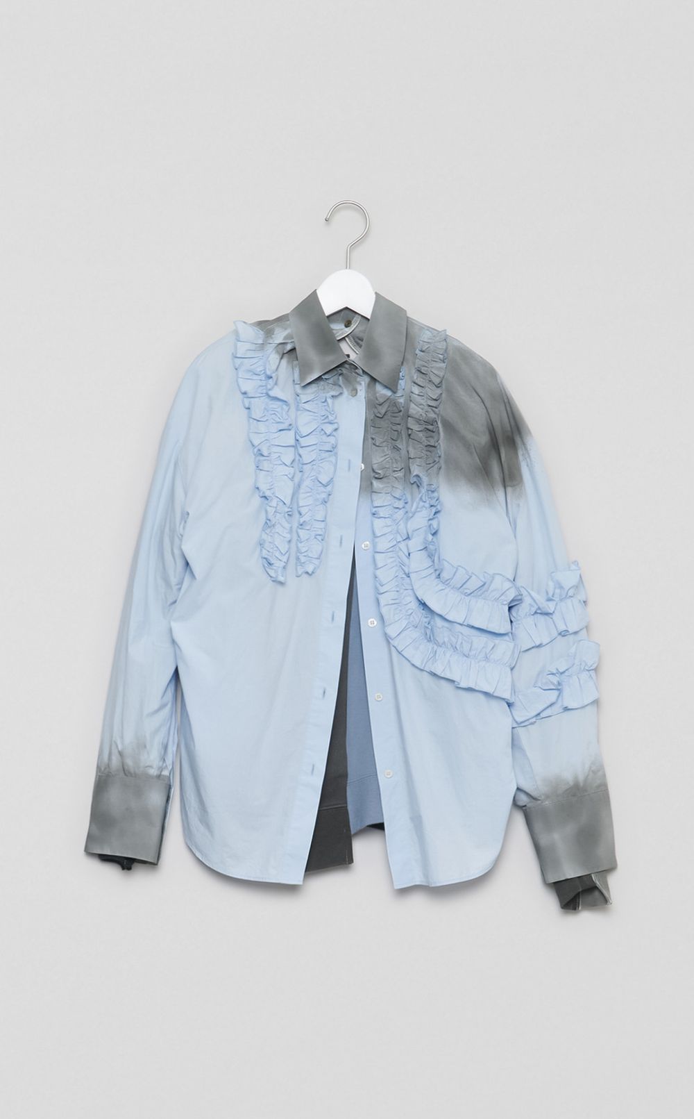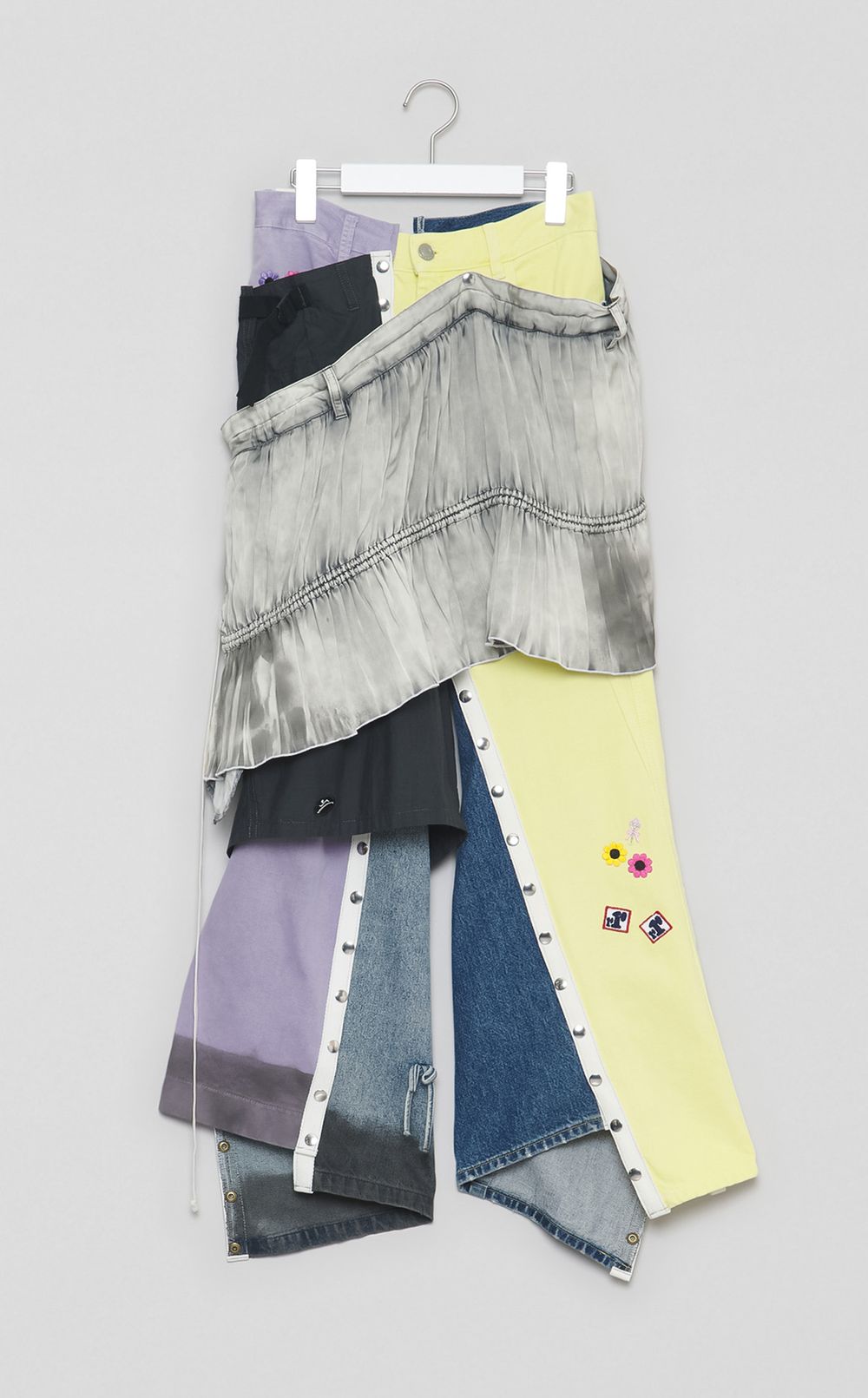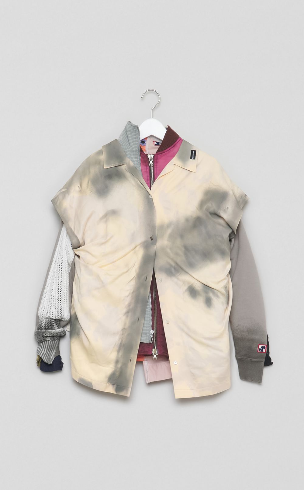 ブランドのロゴなどを排除した上で全てのパーツを解体し平等化。ランダムにパッチワークし1枚の布に。
