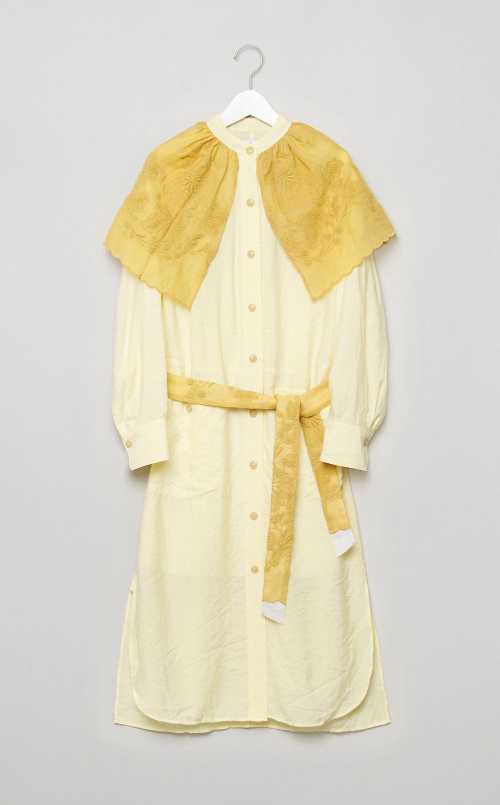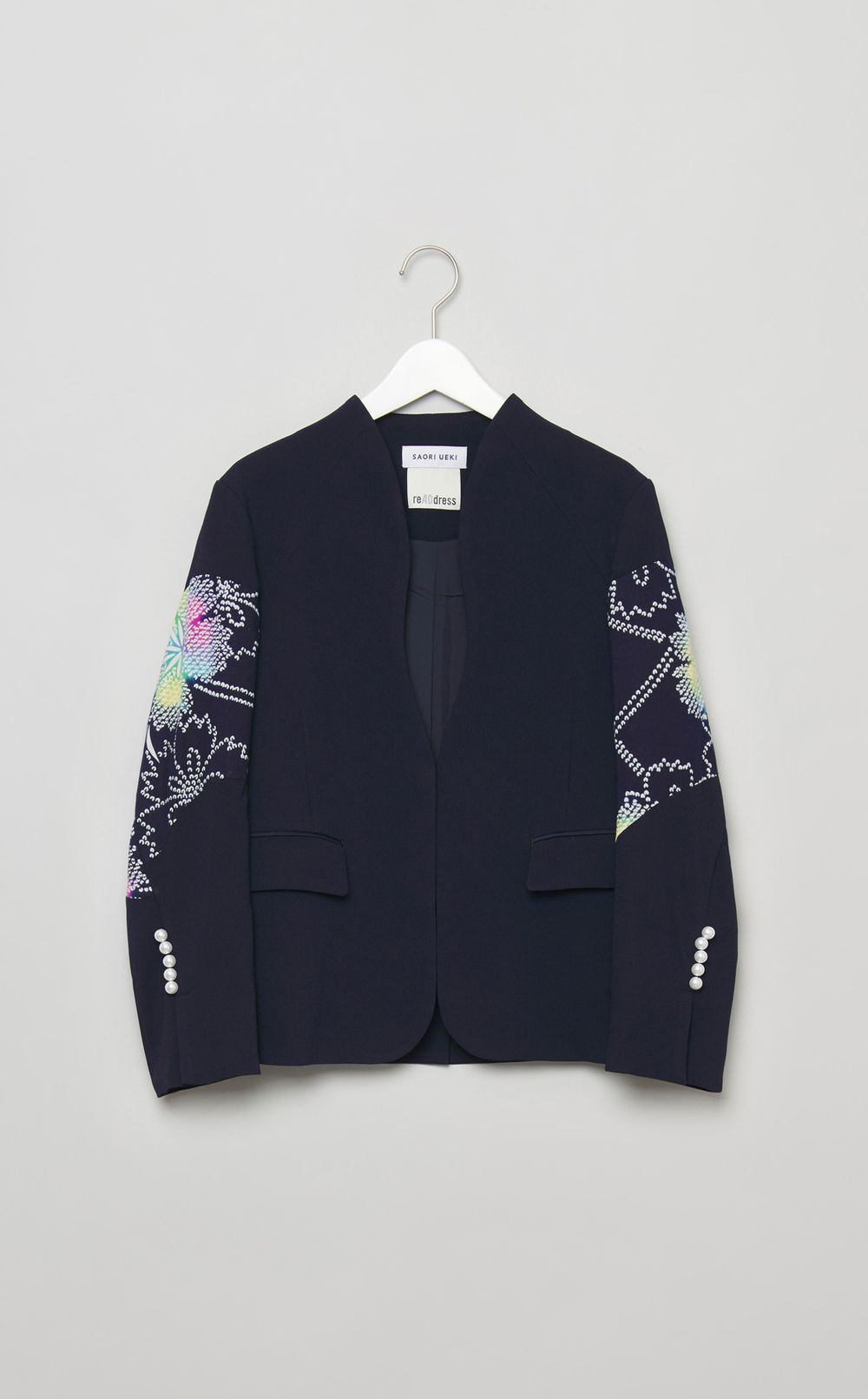 もともとあるブランドデザインを生かしつつ新たなデザインに見え、1枚で見栄えのある商品を展開いたしました。共通した襟を使用し、統一感を出しています。リメイクは足していく作業が多いですが、やりすぎないデザインにするよう製作いたしました。