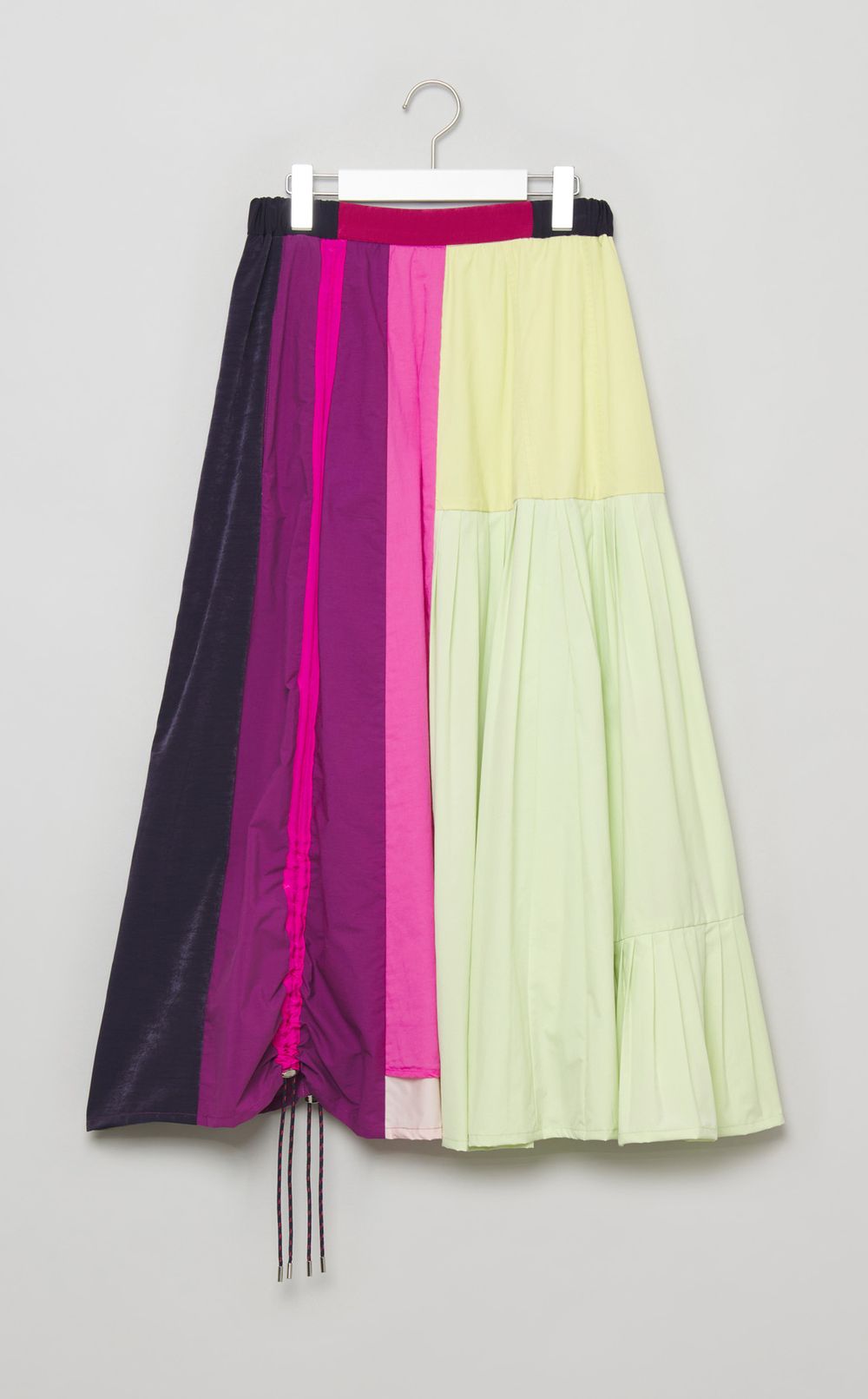 寄せたギャザーの動きによって丈やシルエットが変化し、