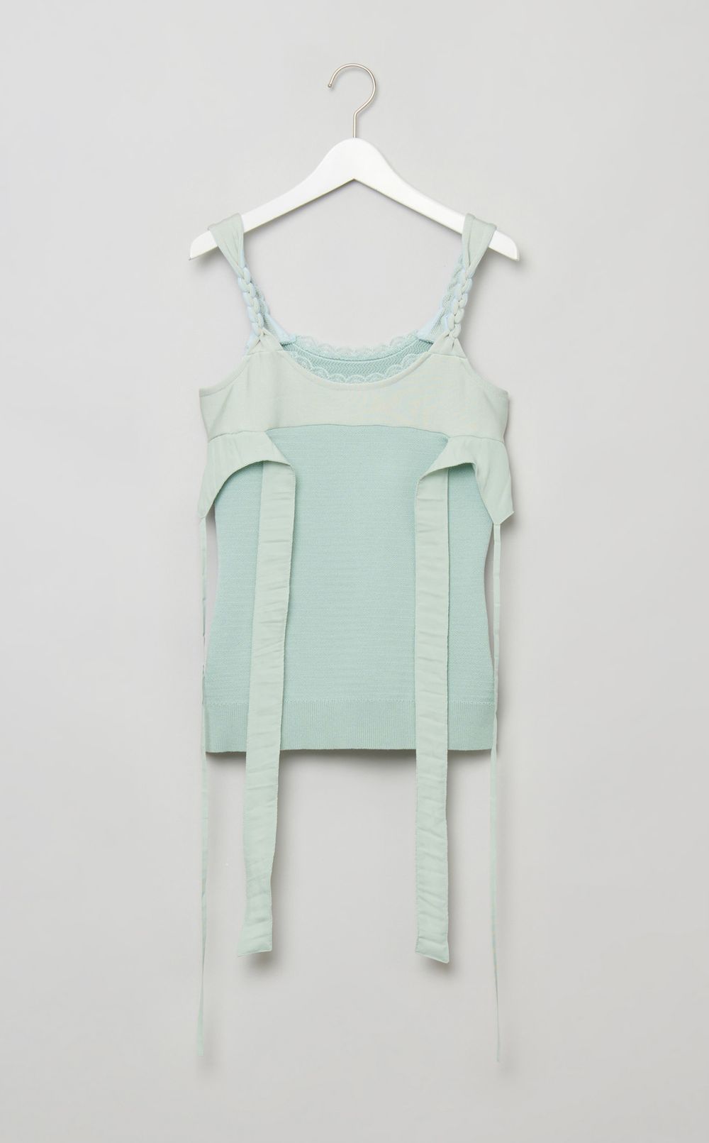 綺麗に着飾り完成された美しさの手前にある時間にそれは凝縮されていると私は思いました。メイクをしながら片手間に朝ごはんを食べる、完璧なファッションに未だ手付かずのヘアメイク、出掛ける⽇の前夜に部屋着のまま新品の靴を試し履きする。浮足⽴った行動の中で生まれるミスマッチに、あらゆる“フェミニン”が秘められていると思います。