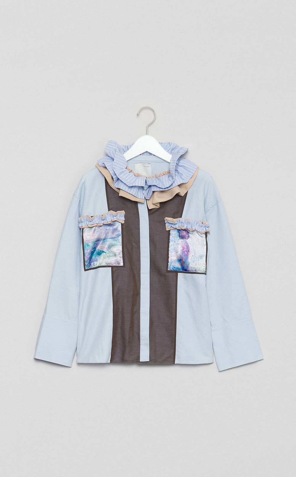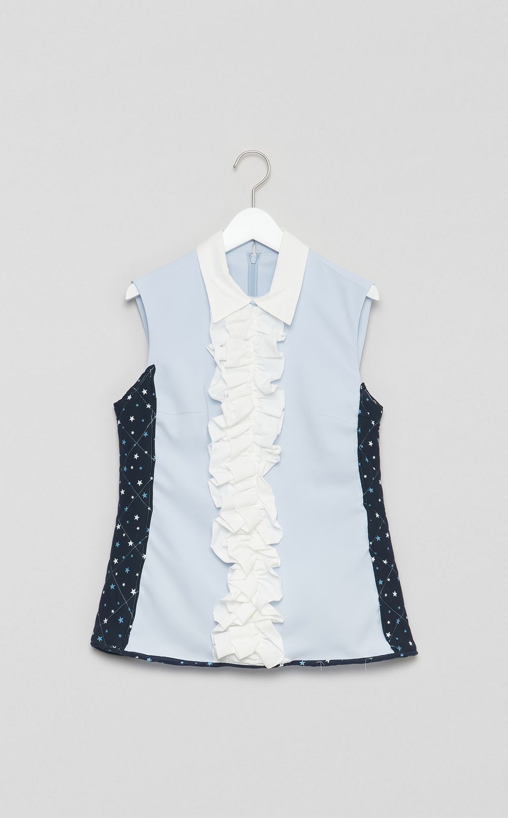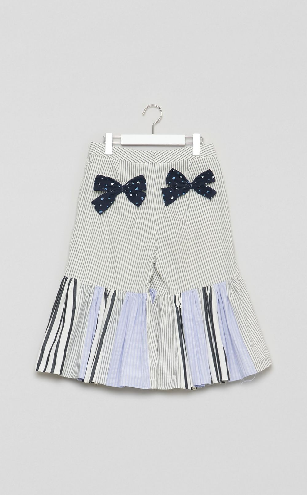 パジャマやルームウェアからインスピレーションを受け、身にまとった瞬間にふっと心地よさが宿るようなやわらかなシルエットを追求しました。たっぷりあしらったフリルは、ひらひらと揺れてまるで夢の中を漂うような軽やかさを演出。多彩な柄を組み合わせることで、可愛らしさと遊び心を加えた、眠りの光を感じる服
