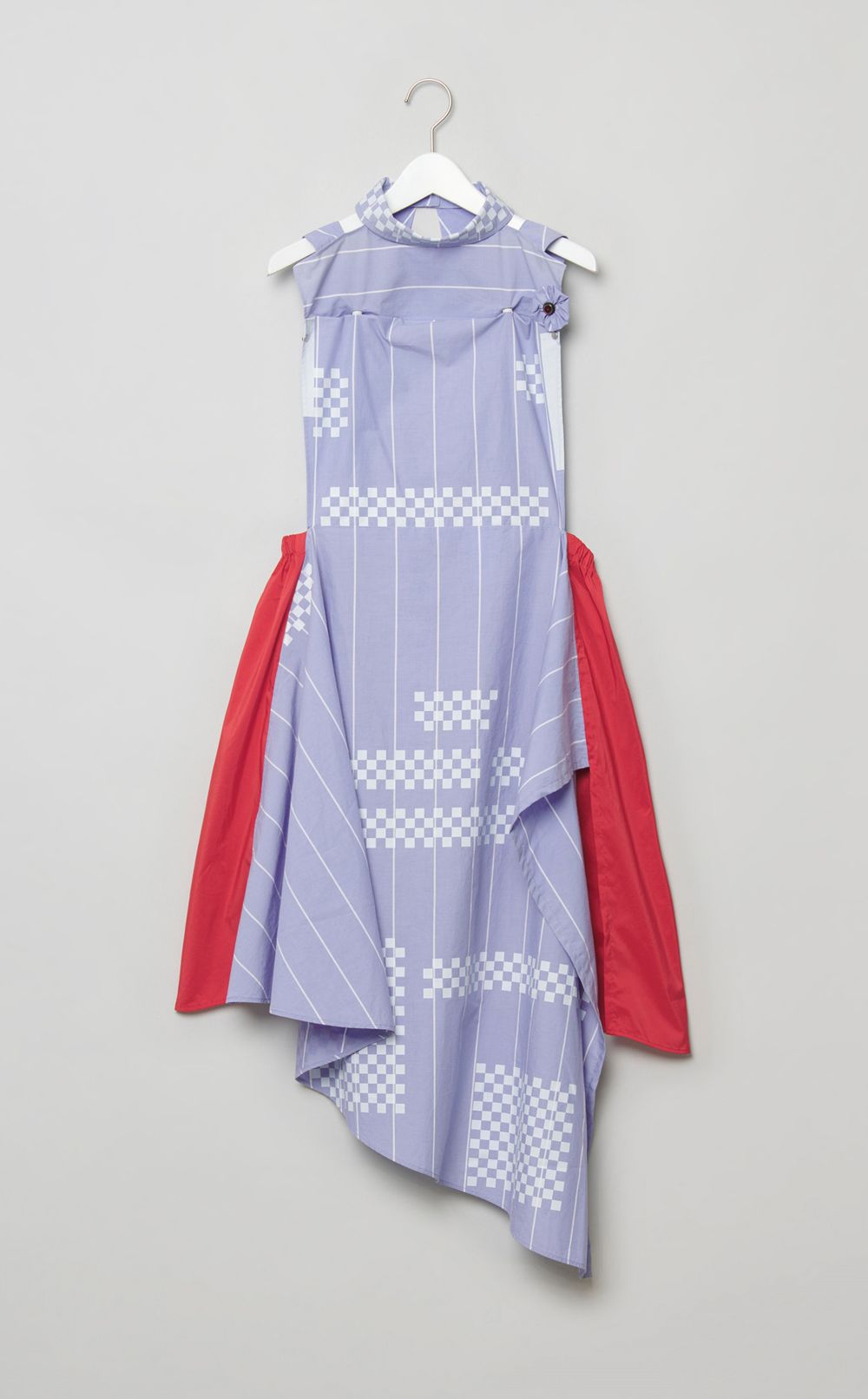 「No cut(ノーカット)」では、ハサミを使わずに、「シルクスクリーン」「顔料プリント」「染め」を施すことで、回収された衣服の傷や汚れを隠し、新しい表情を持つ衣服に生まれ変わらせます。市松模様には「永遠」「無限の繁栄」の意味があり、生まれ変わった服も、長く人々に愛されるものであって欲しいという思いが込められています。