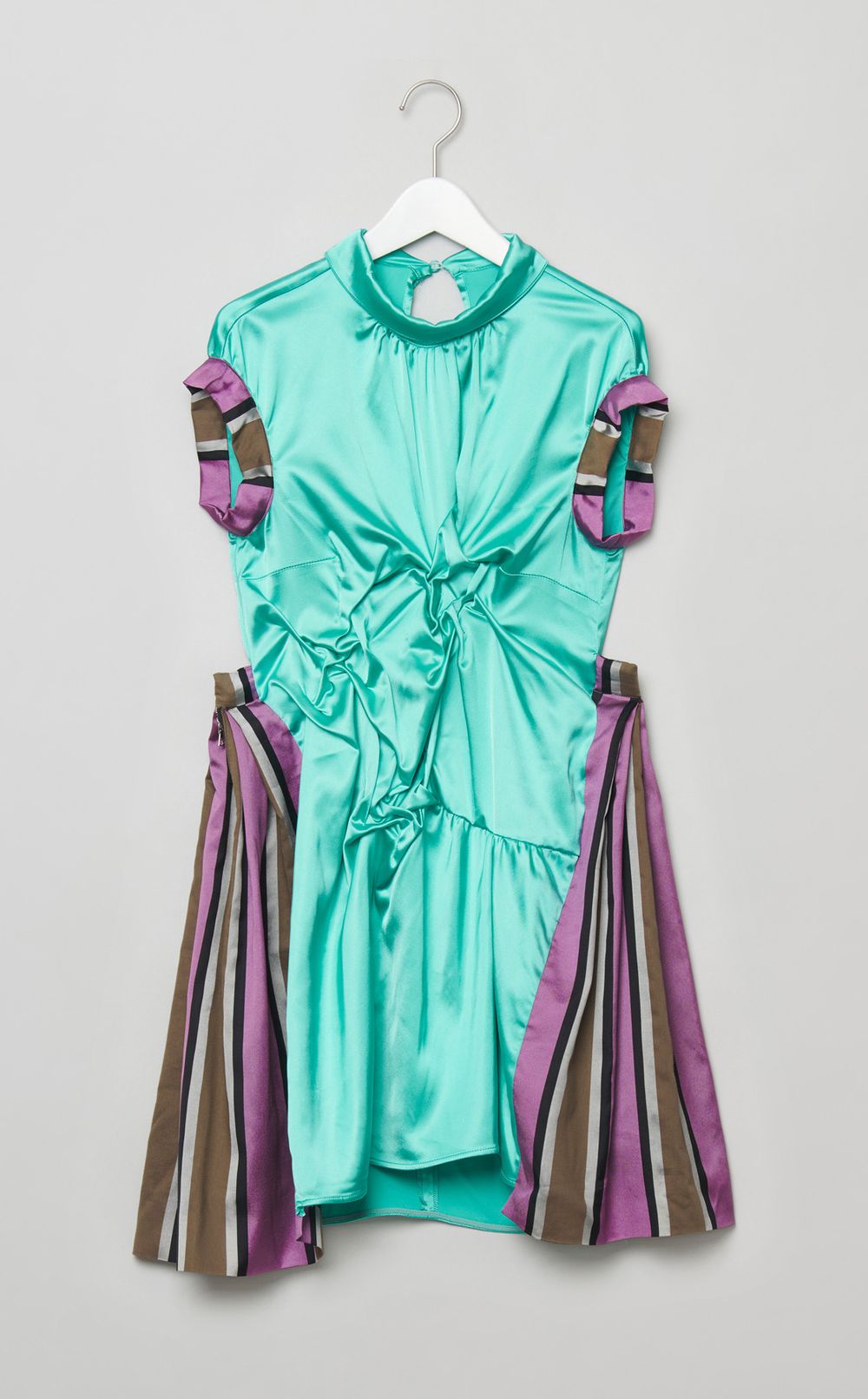 山崩れを防ぐための方面保護コンクリートの人工的な無機質さと山の生い茂る緑のコントラストが面白く、テーマにスカートをデザインしました。
